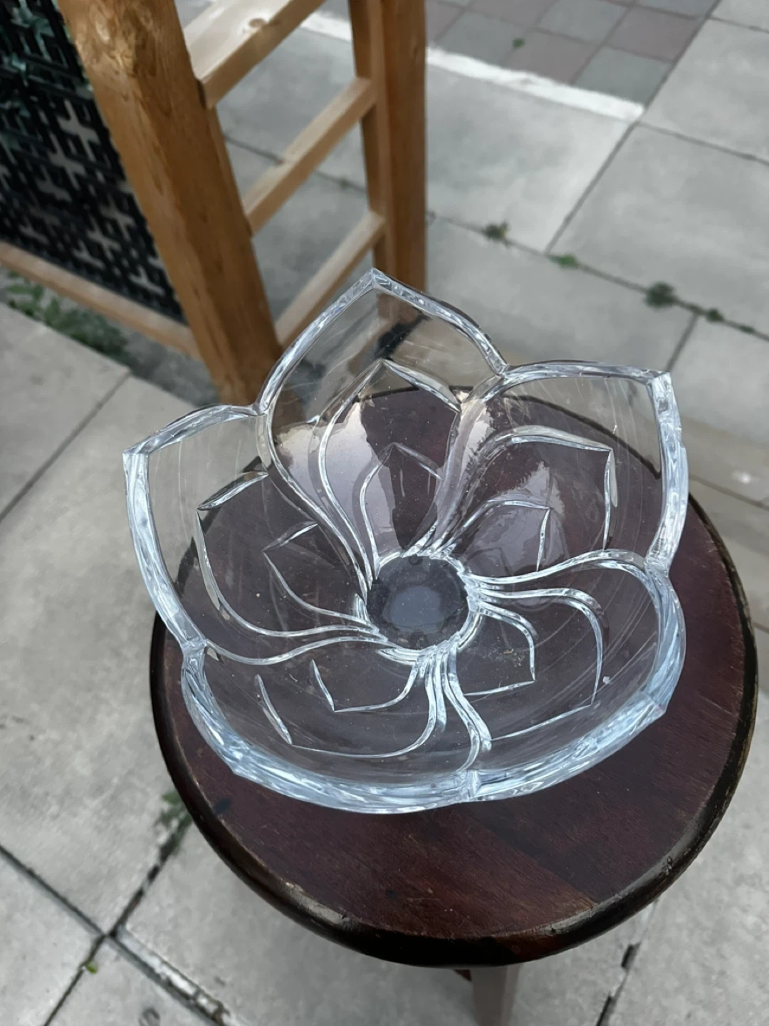 Selling a beautiful flower-shaped crystal bowl! It's in great condition and would look lovely as a centerpiece or decorative piece