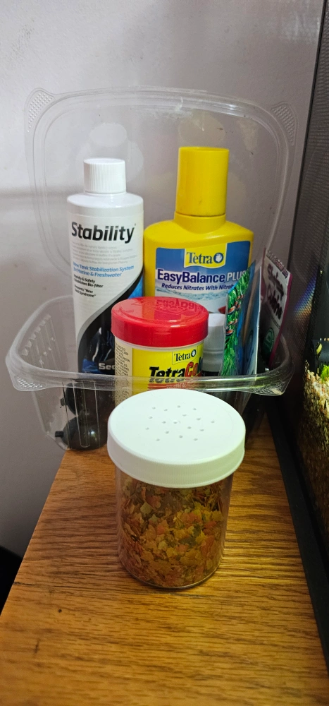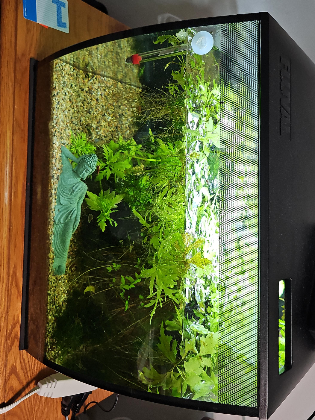 Selling a Fluval aquarium, complete with plants and gravel. With cherry shrimps, small crayfish, crabs and snails. Also included are Tetra brand fish food and EasyBalance water conditioner, as well as Seachem Stability to help maintain a healthy environment for your aquatic friends! It's all ready to go for a new home