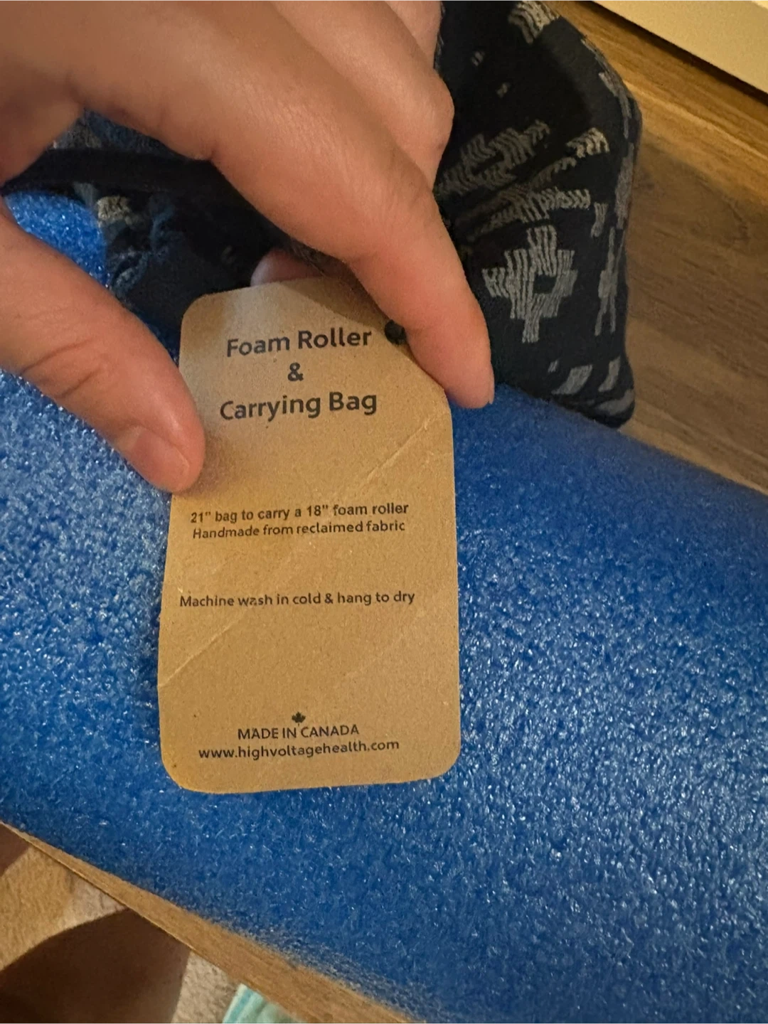 Selling a foam roller that's great for muscle recovery and relaxation! It comes with a carrying bag made from reclaimed fabric, perfect for keeping it clean and easy to transport. The bag is 21" and designed to carry an 18" foam roller. Machine washable in cold water, just hang to dry! Note that the carrying bag has some damage to one end of the cover only.