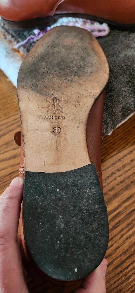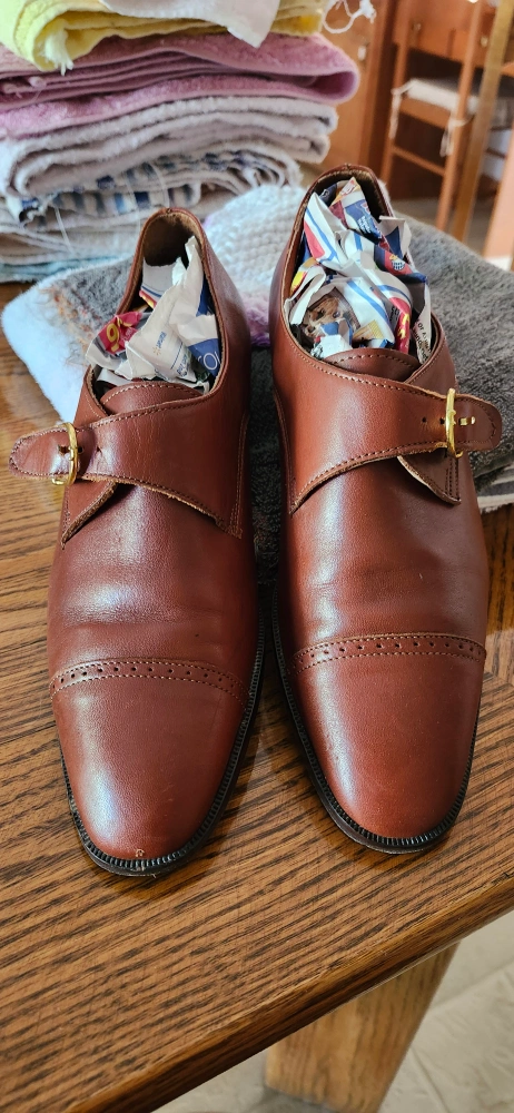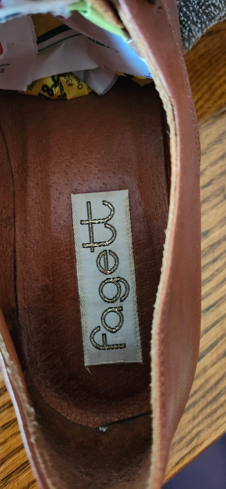 Selling a pair of womens Fogett brown leather monk strap shoes. They are marked as a size 39(8.5). These shoes have a classic and stylish look, perfect for dressing up or down. The soles show some wear, but the leather uppers are in good condition.