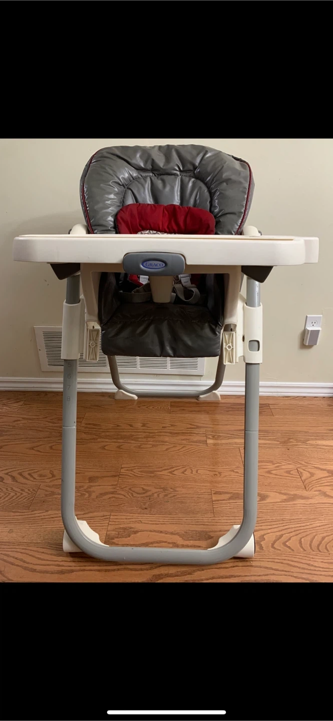 Foldable Baby Eating Feeding High Chair Kids grow up fast and the High Chair grows with them. This foldable high chair easily transitions from first foods chair to a traditional high chair. The Feed Easy food tray makes less mess and intimate parent-baby bonding. Kitchen cleanup is a breeze with wipeable materials and a dishwasher-safe main tray and a mini Feed Easy tray. Easily remove the machine-washable seat pad and machine-washable harness and straps. Keep your little one comfy and secure with the 5-point safety harness. The foldable high chair can fold for easy storage. Give baby a seat at the table and make them like family! High chair lets your baby eat with you on the table and teaches them to eat on the table with you, watching you eat and learning to eat properly. Being on eye level contact while you both eat creates a closer bond and relationship with your baby and teaches them how to eat properly. * Easy clean design * Includes BPA-free Feed Easy food tray for less mess feeding * Easy to remove dishwasher safe main tray and mini tray * Machine washable fabric seat pad, harness, and straps * Keeps little ones secure with 5-point safety harness. * Foldable for more space * Strong and sturdy build Can be picked up or delivered Cheap - message me