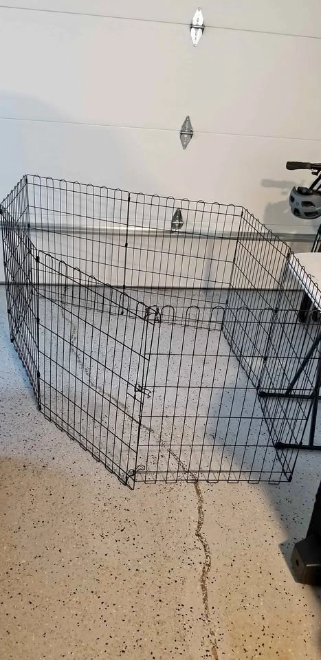 Portable 30-inch play and exercise pen for dogs up to 20 inches tall. Foldable (easy to store). Easy to set up, simply unfold. Secure locking with slide-bolt latches. Includes 8 anchors for outdoor use.