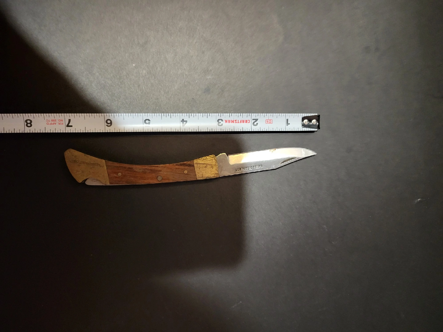 Selling a folding pocket knife. It has a wood handle and a stainless steel blade. Great for collectors or everyday use!