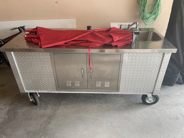 Well-maintained food cart equipped with a water warmer and umbrella. Fully licensed and approved by AHS as a food vendor. Items for Sale: • Food Cart (includes umbrella & tote tank): $3,800 • Commercial Fridge: $500 • Tent (10ft x 10ft) with 3 walls : $150 We’re selling because our business is expanding into a food trailer! This cart is a turnkey opportunity — perfect for anyone looking to start a food business or test new products at festivals and markets with low startup costs.
