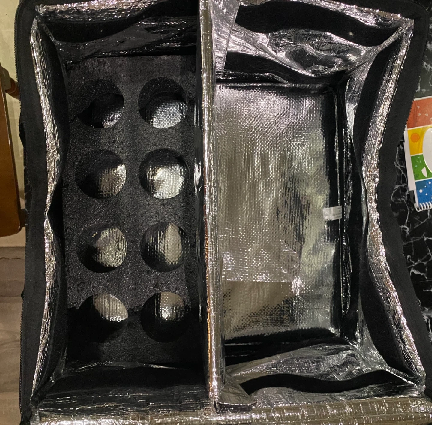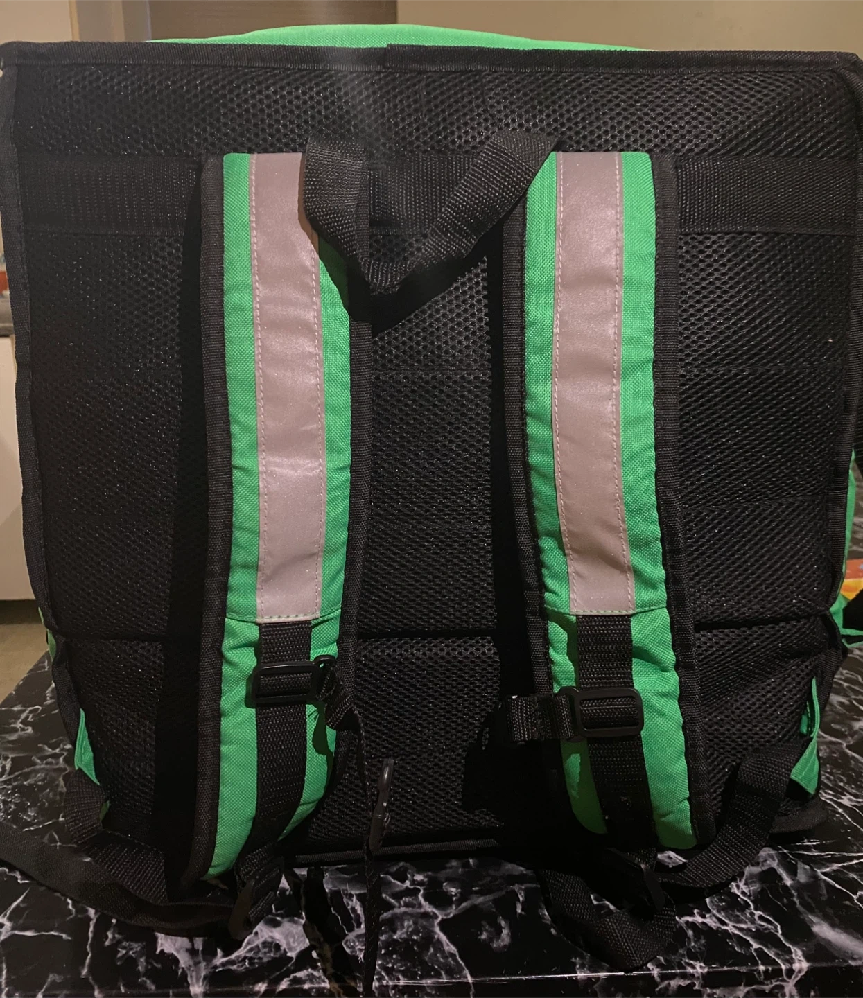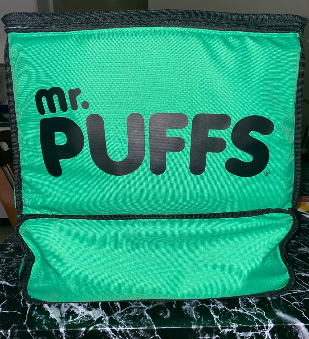 Selling a Mr. Puffs insulated delivery bag! It's in great shape and ready to keep your deliveries hot or cold. Perfect for food delivery services or catering gigs. The bag is green and black with the Mr. Puffs logo prominently displayed. >> bag with pizza compartment and drinks holder