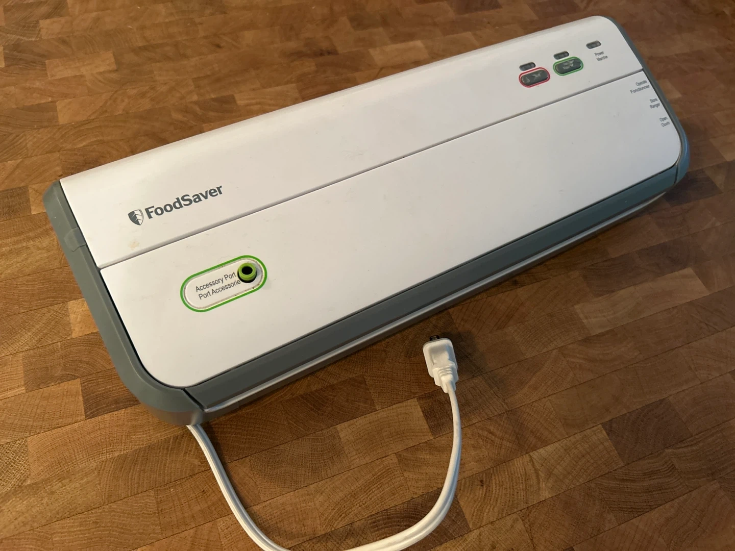 Selling a FoodSaver vacuum sealer. It's in good condition and ready to help you keep your food fresh longer. It includes the power cord.
