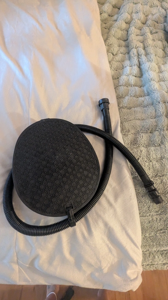 Selling a foot air pump in black. It's in great condition and ready to use for inflating your items. Perfect for camping trips or inflating pool toys!