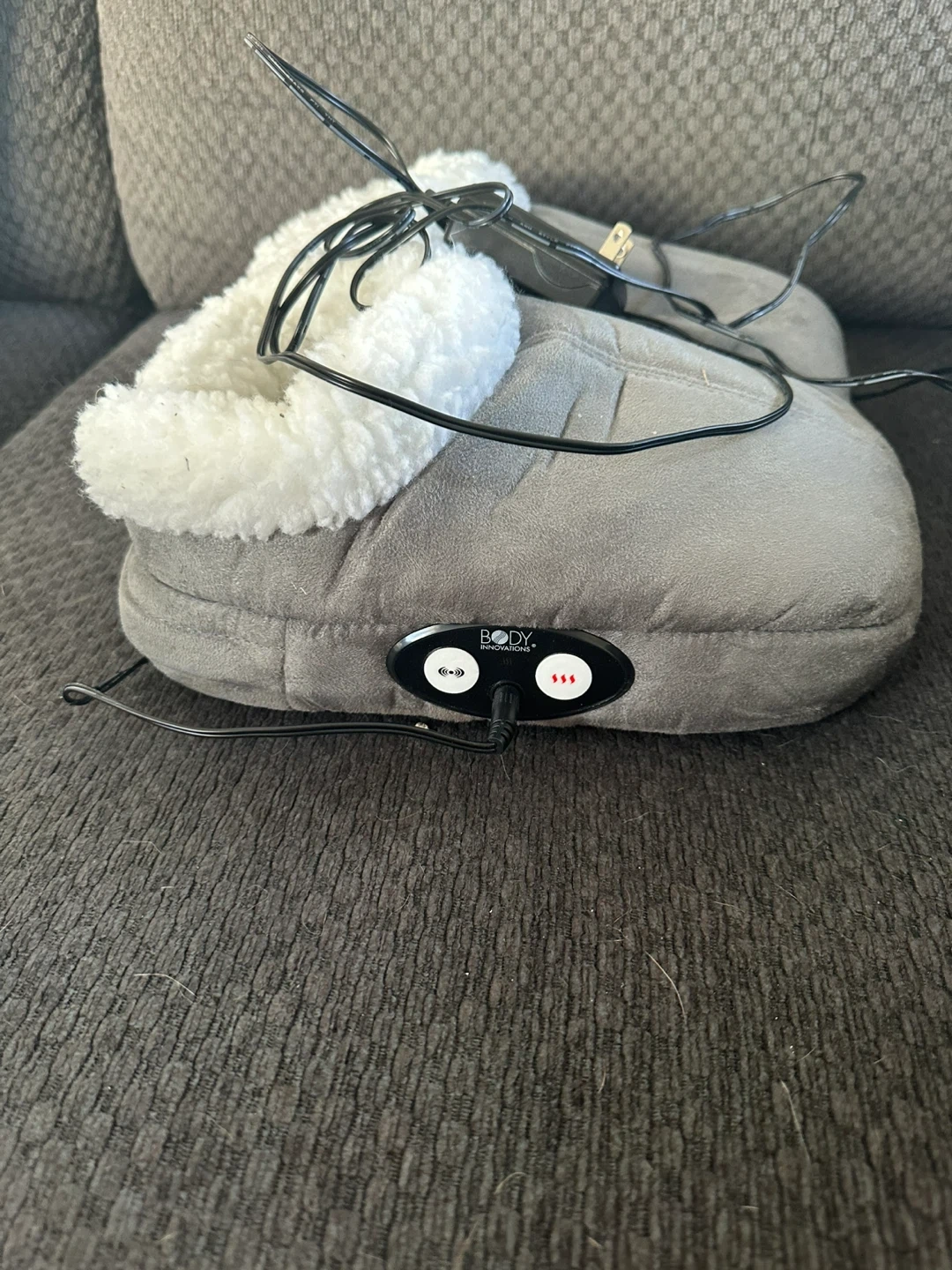 Body innovations soothing foot warmer. Excellent working condition. Has heat vibration, warming massage. Filled with memory foam, One size fits all