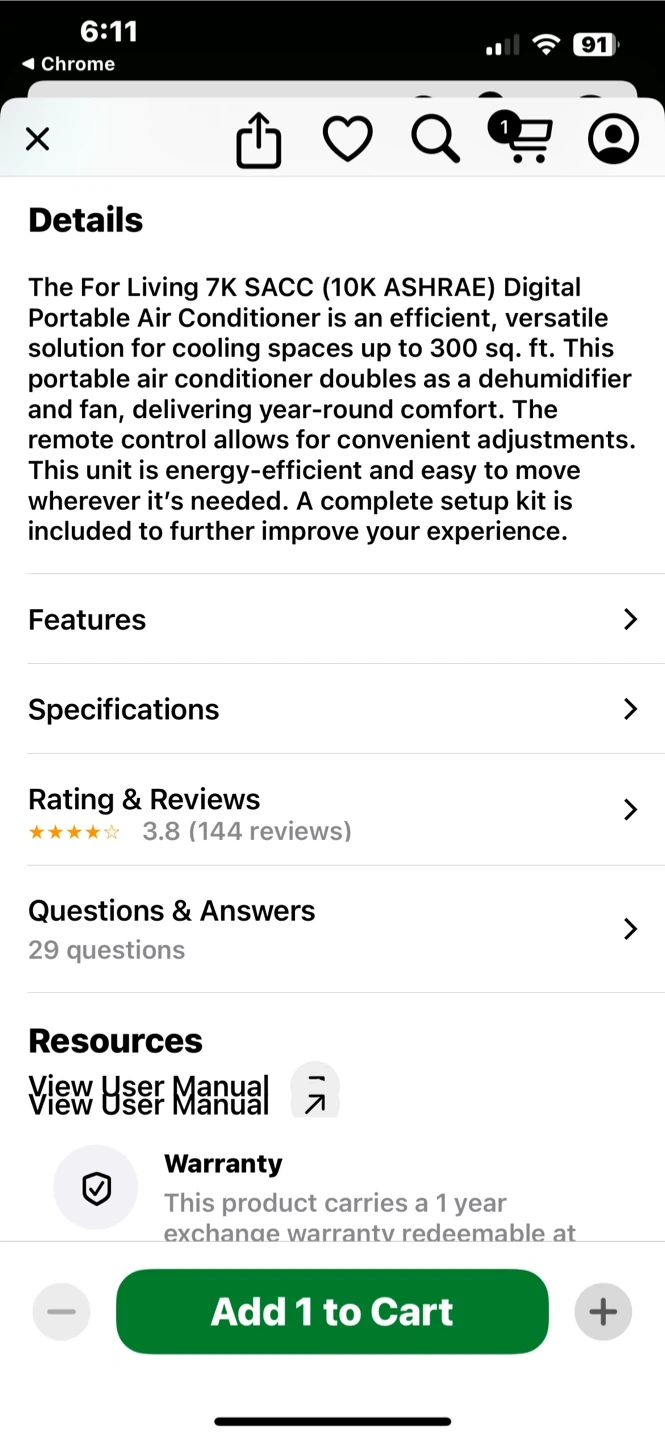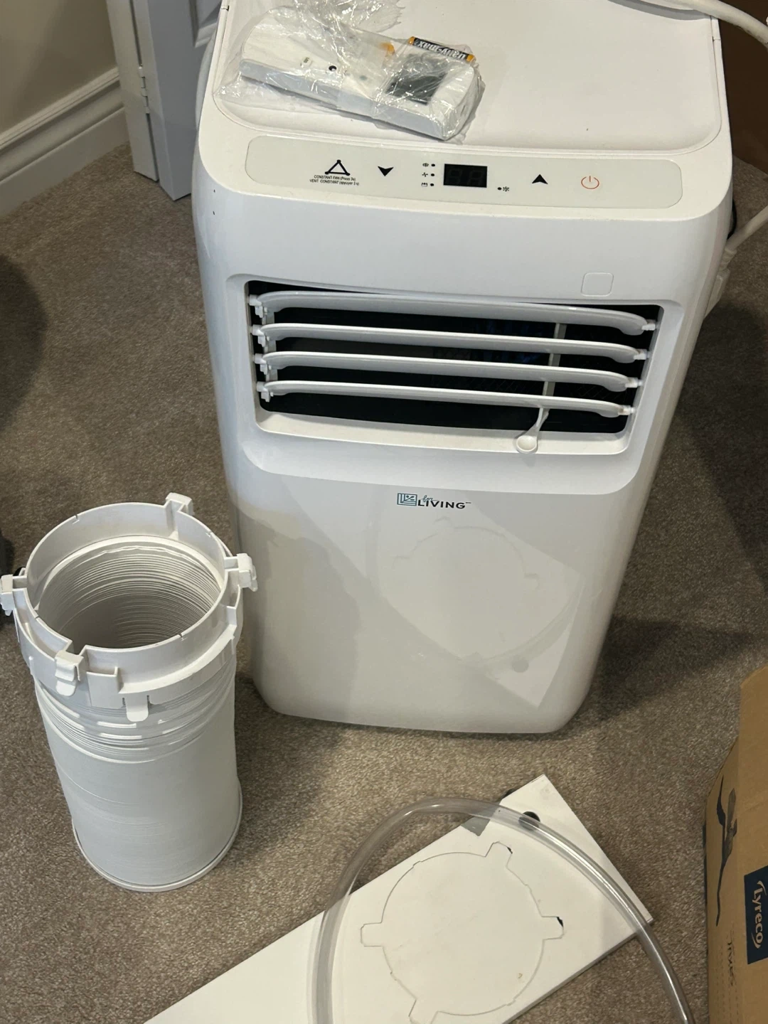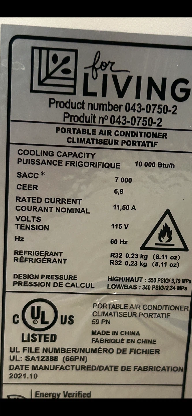 OBO-I'm selling a For Living 7K SACC (10K ASHRAE) Digital Portable Air Conditioner. It's white and comes with an included window installation kit for easy setup. This unit is energy-efficient and easy to move, making it a great solution for cooling spaces up to 300 sq ft. It also functions as a dehumidifier and fan, offering year-round comfort. Originally bought for $419.99