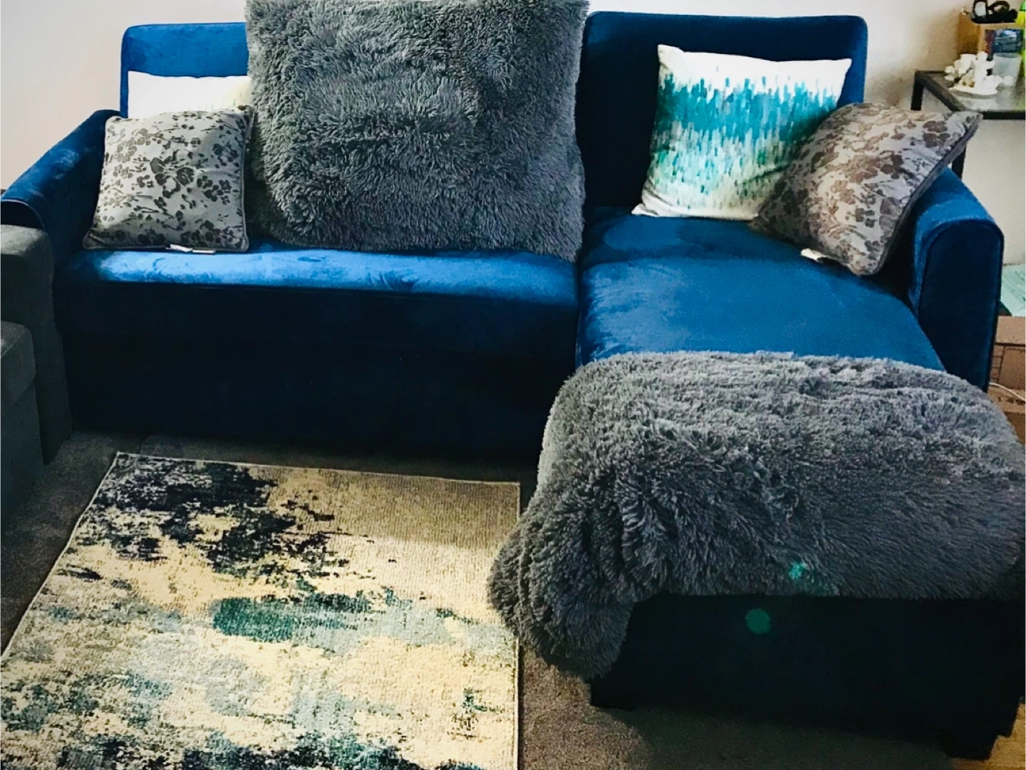 This practical blue sectional sofa offers comfort, storage, and extra sleeping space in one piece. It features a built-in storage compartment under the chaise and a pull-out bed that converts into a twin size, perfect for guests. Details: • Color: Blue • Condition: OK (used, as shown in photos) • Functionality: Built-in storage + pull-out twin bed • Pillows and throws not included • Great for apartments, condos, or guest rooms This sofa is functional, versatile, and a great value for anyone needing seating plus extra sleeping space. Available for pickup.