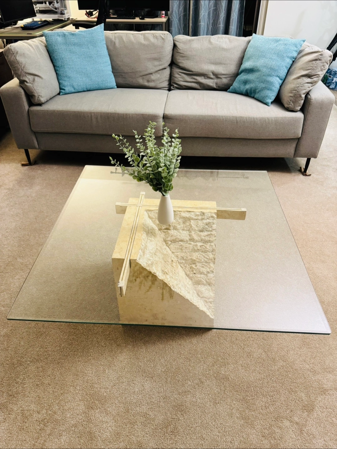 For Sale: Modern Glass & Stone Coffee Table
