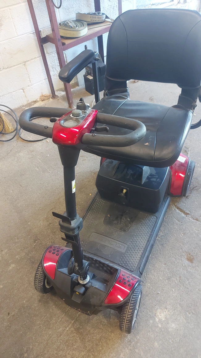 For Trade: One Epic Mobility Scooter – Batteries Needed, Dreams Included Behold this sleek, red-hot mobility scooter – the ultimate ride for zipping around town (once those batteries get a pep talk and a recharge)! It’s in great working condition, minus the tiny detail of needing new batteries – a small price to pay for this stylish steed! With comfy seats, snazzy wheels, and a vibe that screams “I’m ready for adventure,” this bad boy is just waiting for its next owner. Trade Details: No cash, just trades! Got something quirky, cool, or downright bizarre? I’m open to offers –anything old and collectible, with wheels or without. think vintage vinyl, a pet rock with a backstory, or a homemade spaceship model (bonus points if it lights up)! Let’s make a deal that’s as fun as this scooter’s potential! Serious trades only, please – let’s swap stories and stuff! DM me with your wildest offer! (Photo: That handsome scooter in all its glory!)