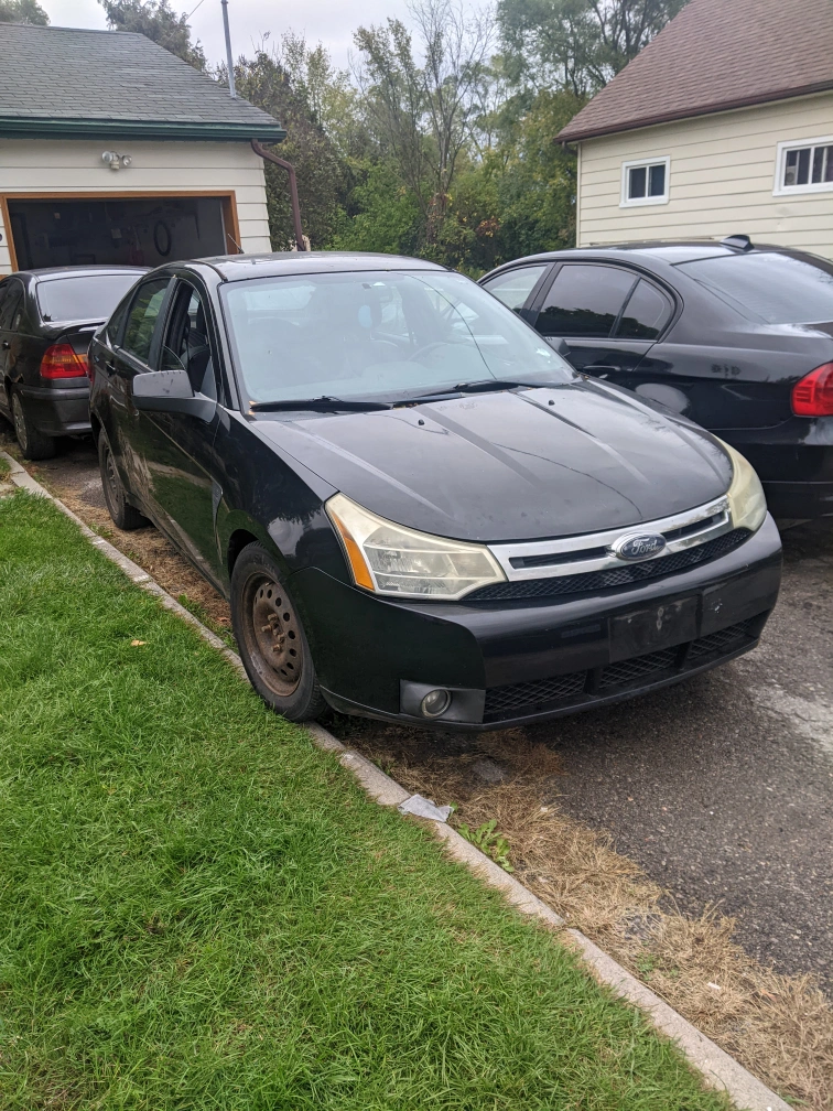 Selling a black 2008 Ford Focus SE sedan. It has some wear and tear, as you can see in the photos, but it's still a reliable car. The interior is grey and black. Perfect for someone looking for an affordable vehicle! runs n drives!