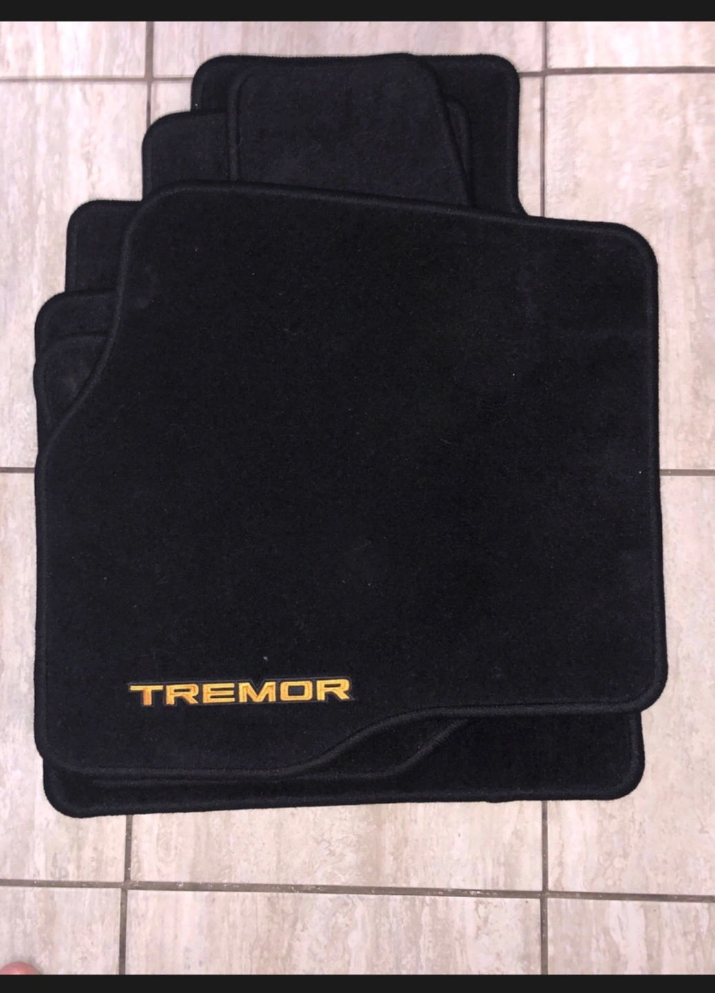 Set of four black floor mats. Embroidered Tremor logo. Brand new condition.