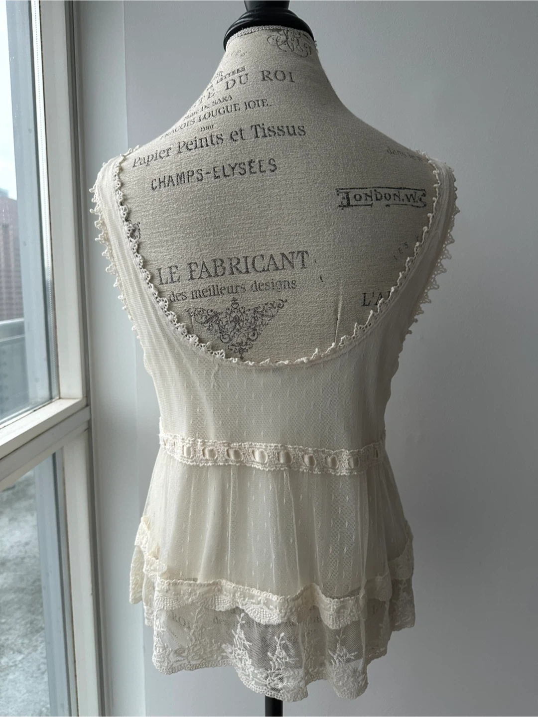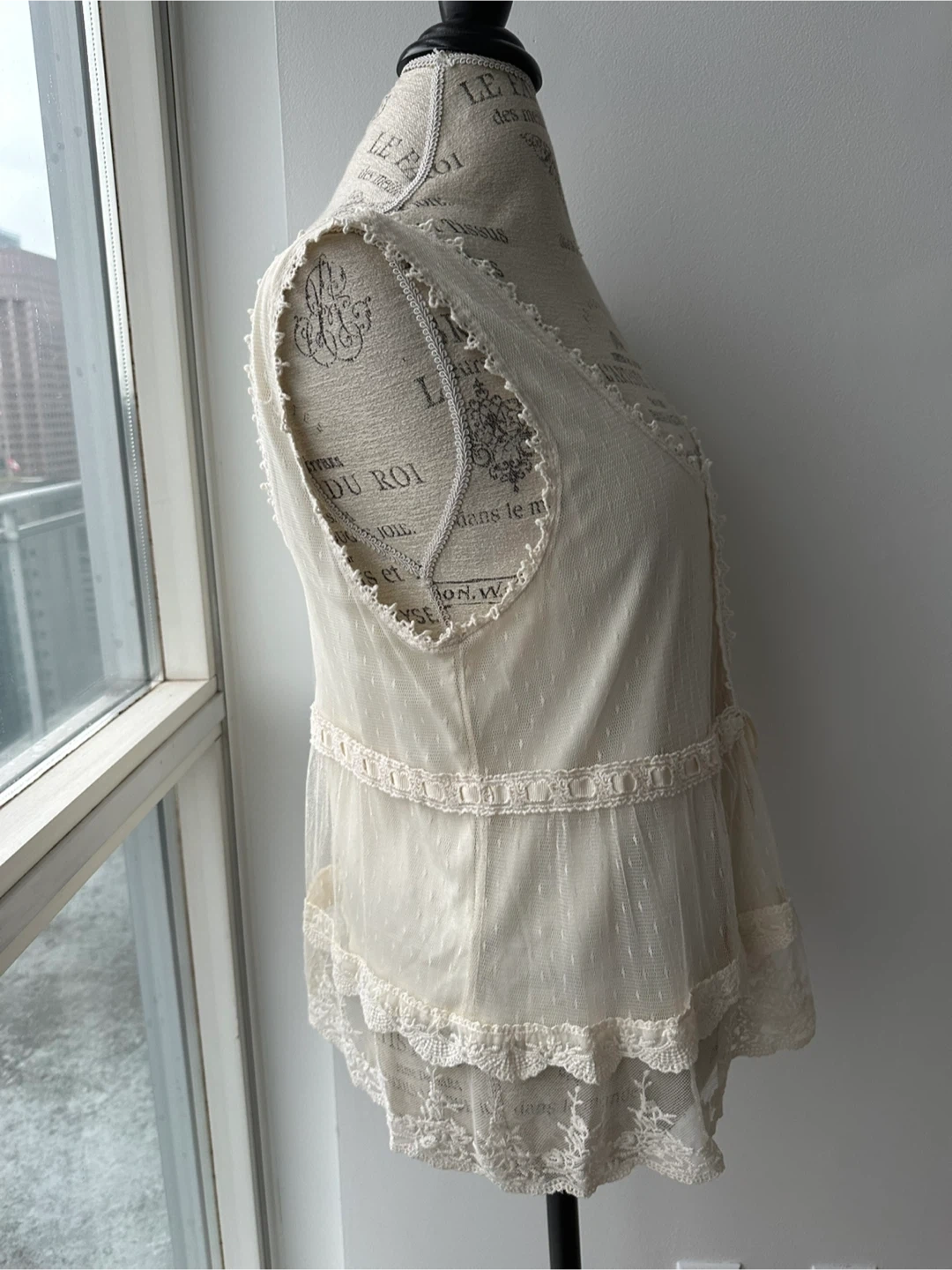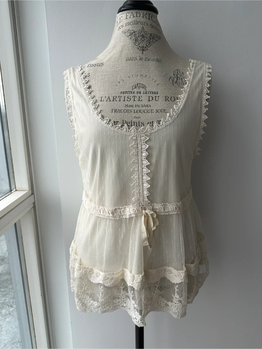 Selling a lovely cream-coloured lace top from Forever 21 in size L. It's in great condition and features delicate lace detailing and a flattering silhouette. Perfect for adding a touch of elegance to any outfit!