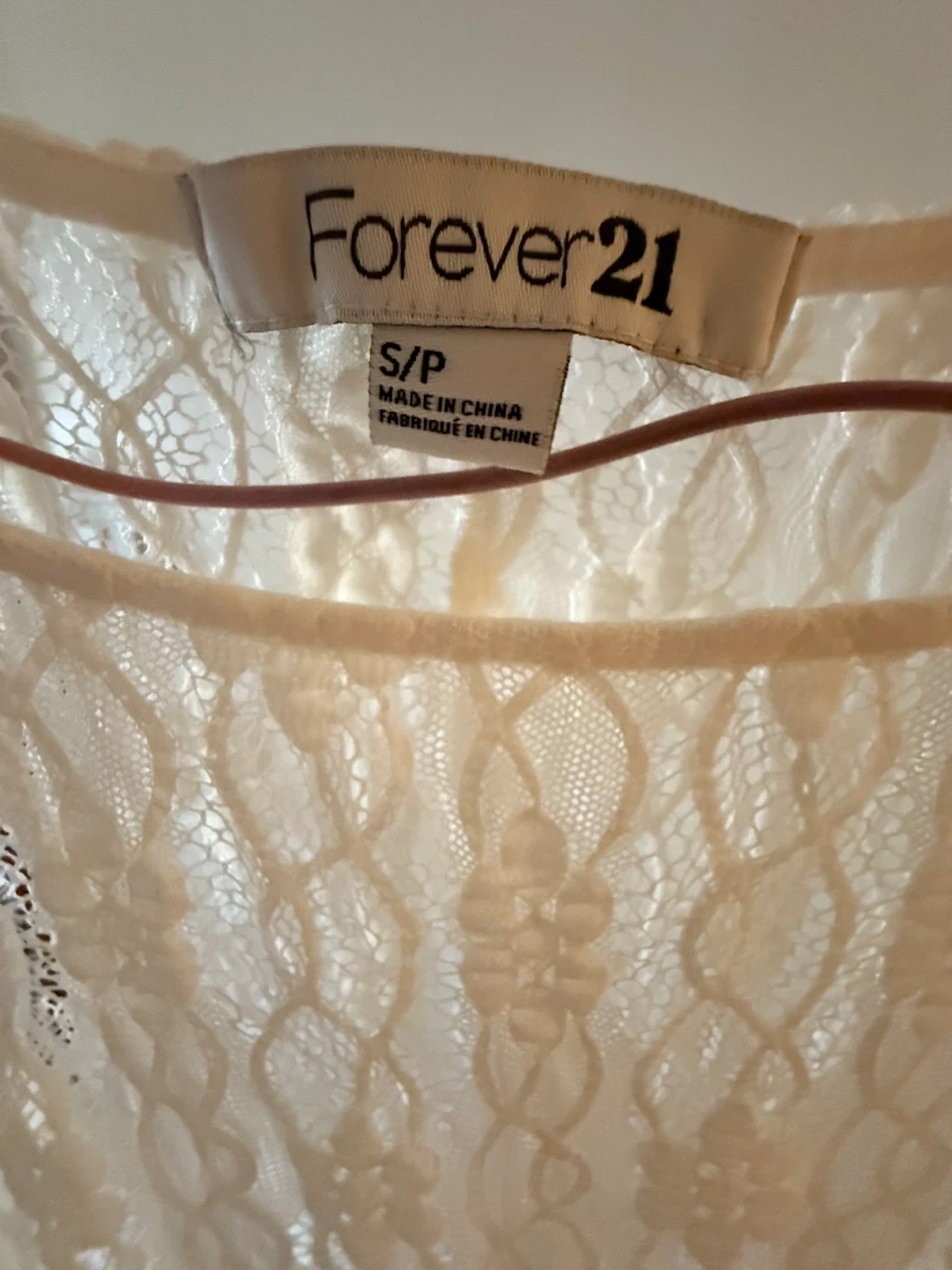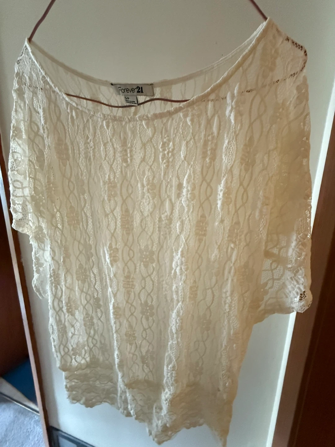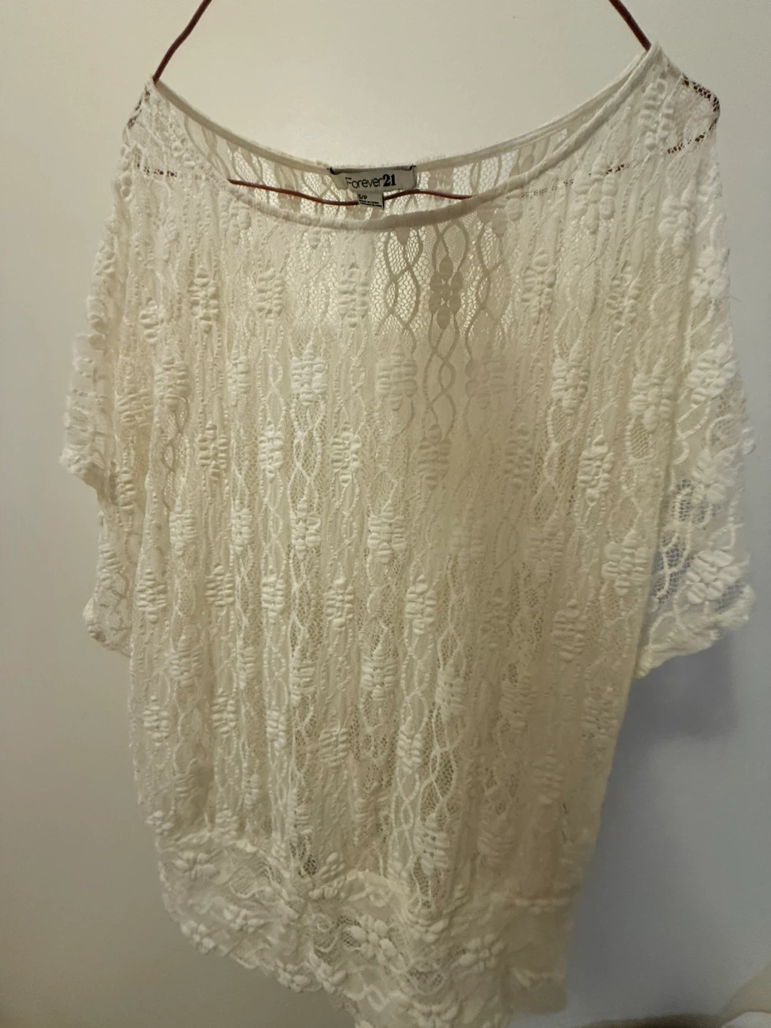 Selling a cute Forever 21 lace top! It's a size small and in great condition. Perfect for layering or wearing on its own. The lace detailing is really pretty!