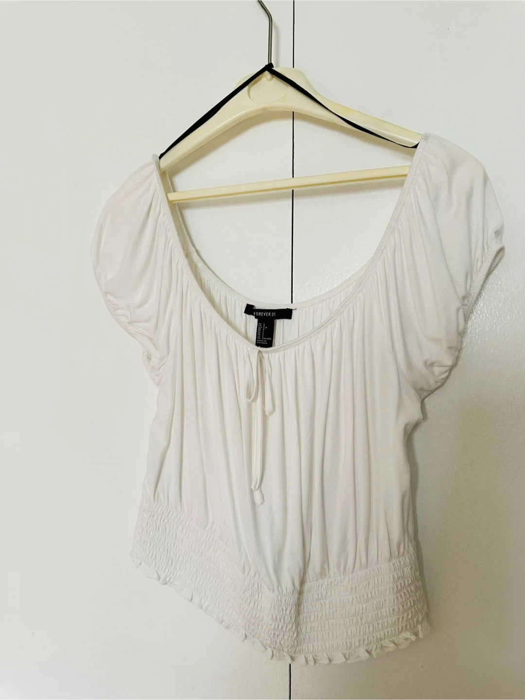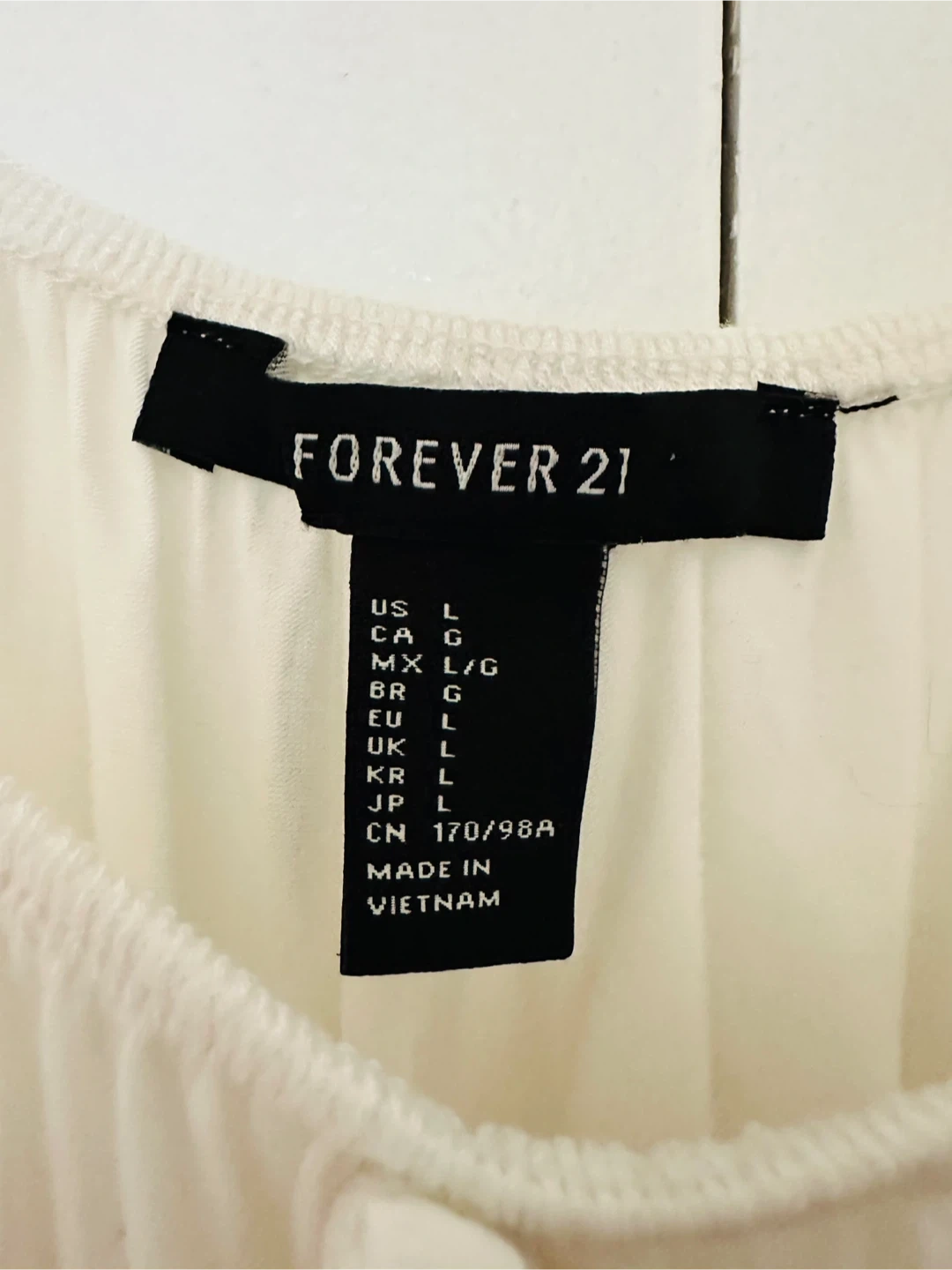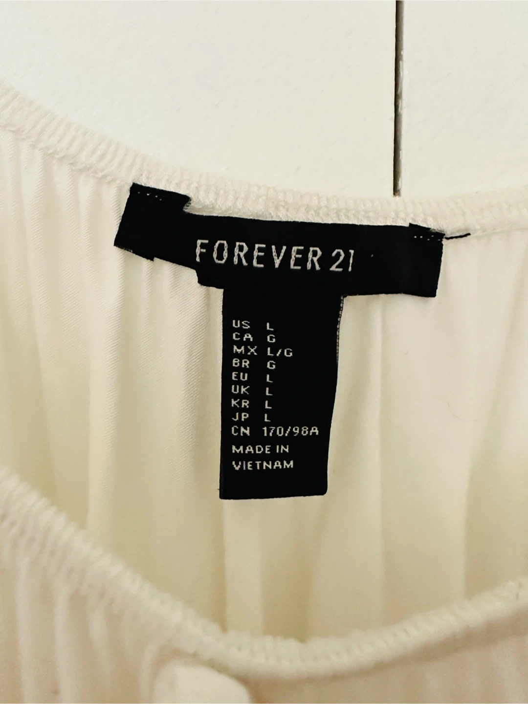 Selling a cute white top from Forever 21! It's a size large and in great condition. The material is soft and comfy, perfect for a casual day out or dressing up for a night out