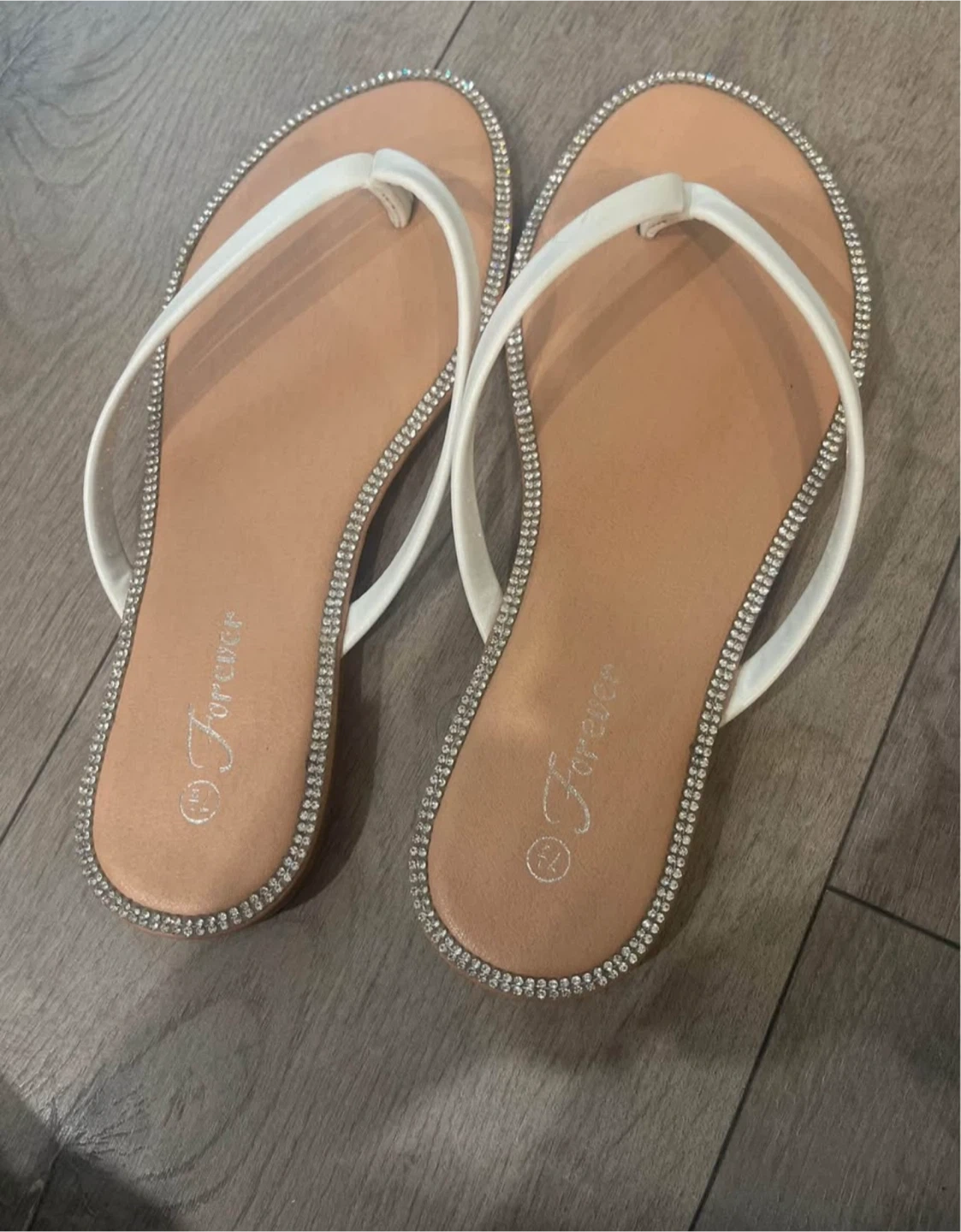 Cute Forever 21 flip flops with a sparkly trim! They're a size 7.5 and perfect for summer