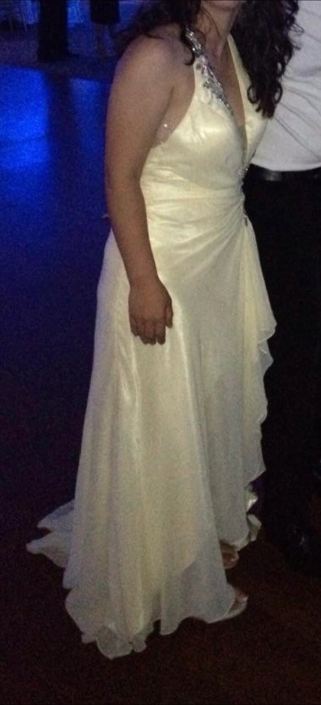 A beautiful ivory halter dress, perfect for a formal occasion! It features a flattering design with a jeweled accent. PLEASE READ EVERYTHING (I’m a size M or 8-10) Got it from a store that was selling one of a kind Paid 800$ Hi everyone (VAUGHAN MILLS MALL LOCATION ) Prom dress ACCEPT OFFERS Asking 150 I have been having the dress for a long time just taking space in my closet. Have used it 3 times (yes it is clean) This stunning cream gown features a ruched design and elegant embellishments, perfect for a bride or wedding guest ( check with the bride-which I did), prom anything formal. The sleeveless dress boasts a sweetheart neckline, adding a touch of romance to its sophisticated style. Is in amazing condition (got it custom made for a friend wedding for 800$ about 10 years ago) Need to make room , and decided to give this beautiful dress a new home to someone that needs it. Half of the back is open (middle of the back), has a small train at the back. Also has a slip open up to the knee, noticeable more while walking It was added an extra material to cover more the chest size area but is easy to remove if you prefer. Can have move pictures /videos, upon request. PayPal /Etransfer /Cash/ Card ( unfortunately will have to do tax for the card due to the machine fees) Meet up at Vaughan Mills or Decathlon Vaughan