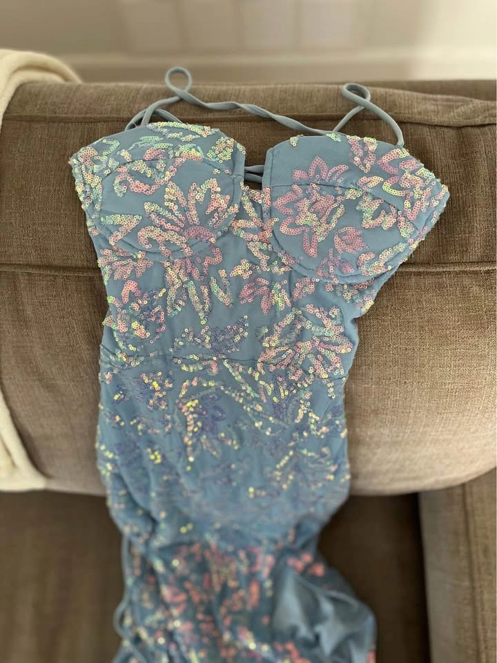 Mermaid dress in color light blue. Size small. Worn once, great condition. Originally $175 plus tax.
