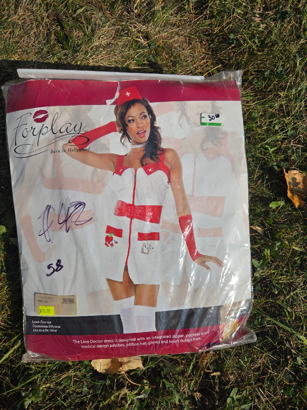 Selling a Forplay Love Doctor costume. It includes an integrated zipper, pockets with medical design patches, stethoscope, pillbox hat, gloves, and heart design belt. It's in great condition. Pick up only.