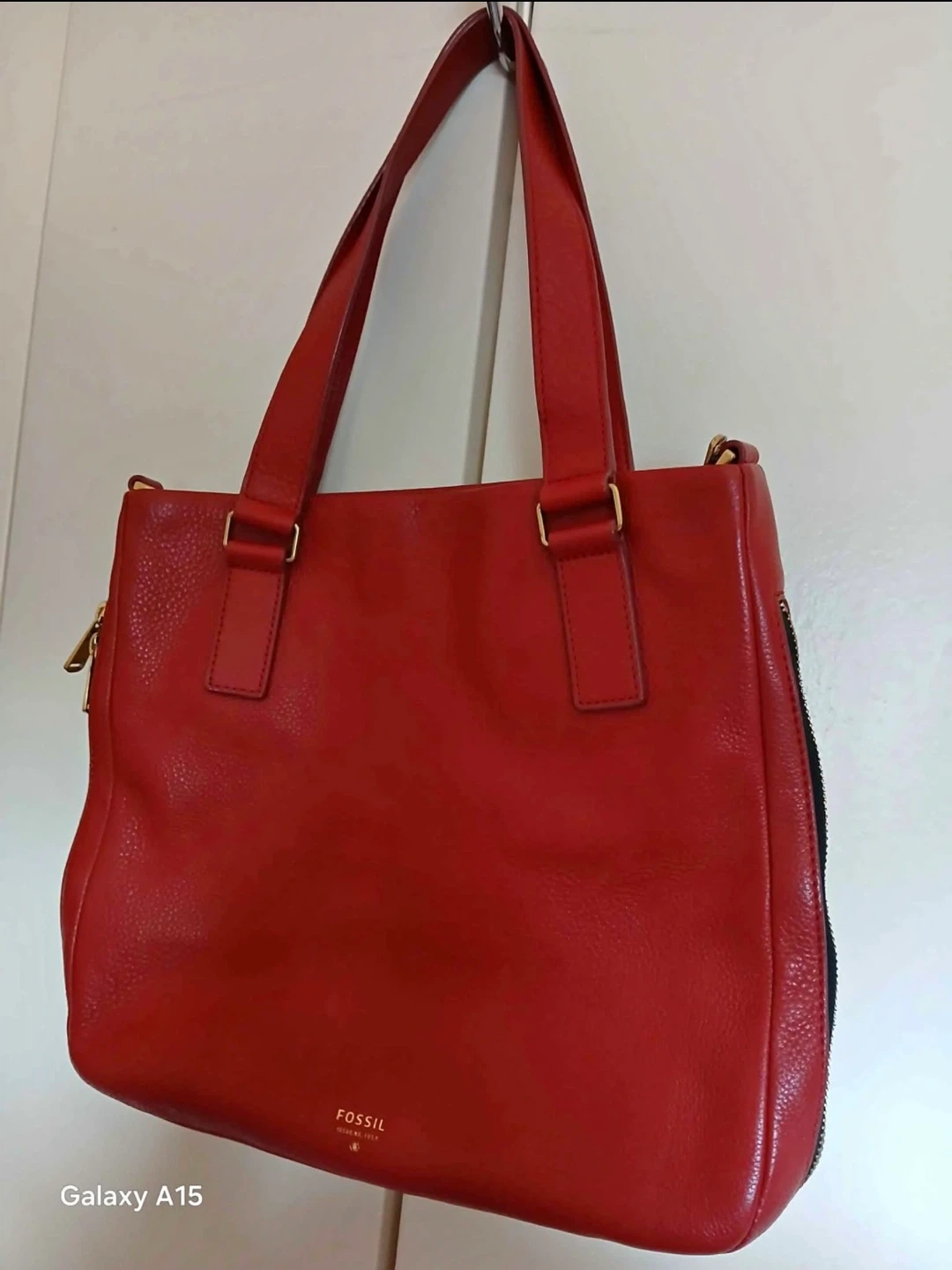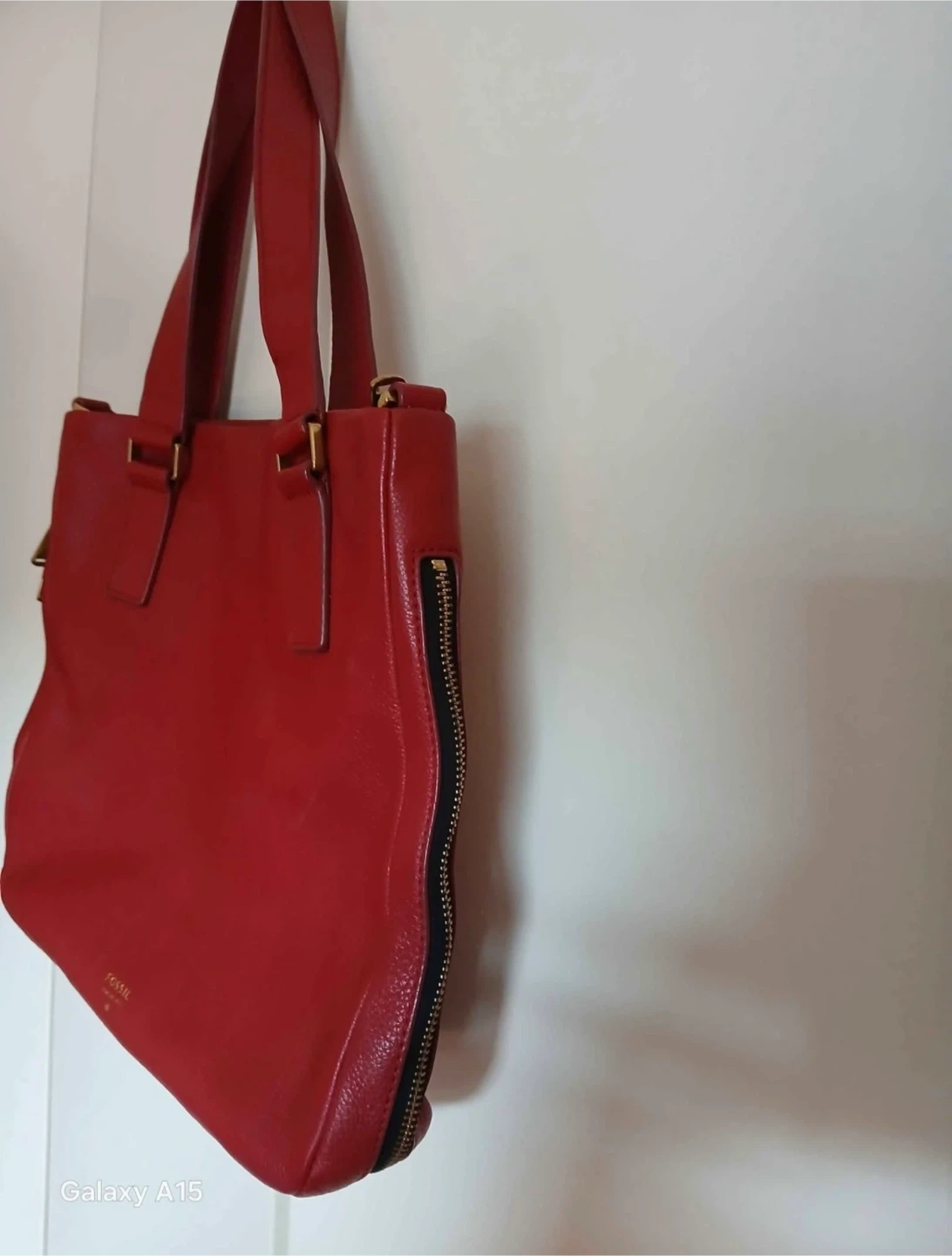 This is a lovely red leather tote bag from Fossil! It's in great condition and ready for a new home. Perfect for carrying your everyday essentials with style