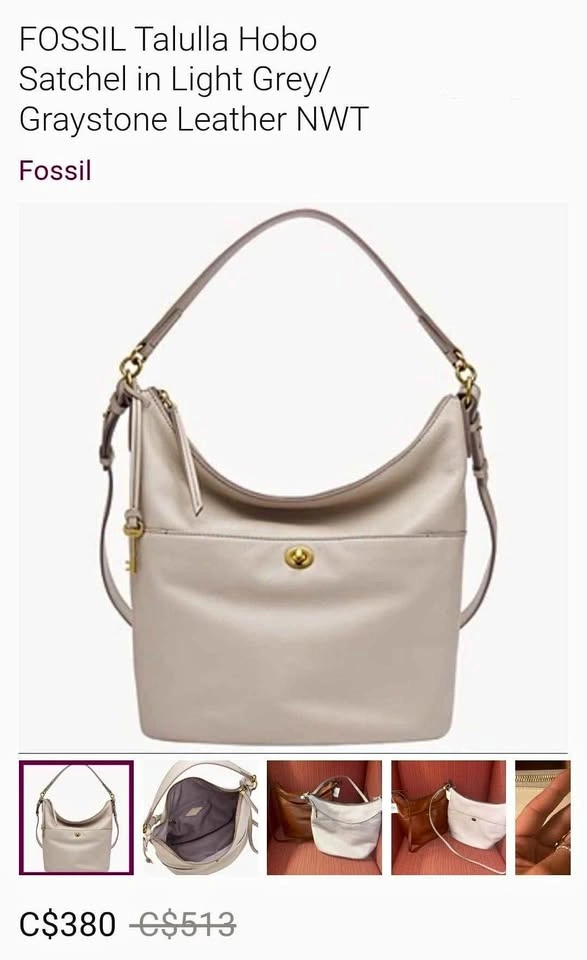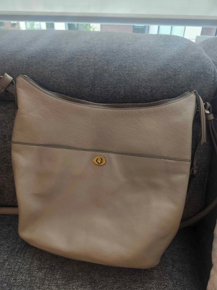 Interior Device pocket fits all phone sizes up to an iPhone® 11 Pro Max and Samsung Galaxy S10+® Material: Leather/Polyurethane Trim Interior Material: Recycled Polyester Interior Details: 1 Zip Pocket, 2 Slide Pockets Silhouette: Hobo Handle Strap Description: 1 Crossbody Strap, 1 Shoulder Strap Platform: TALULLA Primary Colour: Grey Hardware: Old English Brass Shoulder Drop: 60.96cm Strap When Fully Extended Exterior Details: 1 Back Slide Pocket, 1 Back Zip Pocket, 1 Front Snap Pocket Closure: Zip Measurements: 33.02cm L x 13.97cm W x 31.75cm H