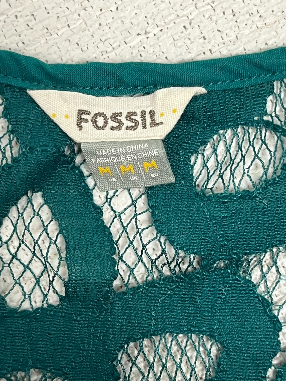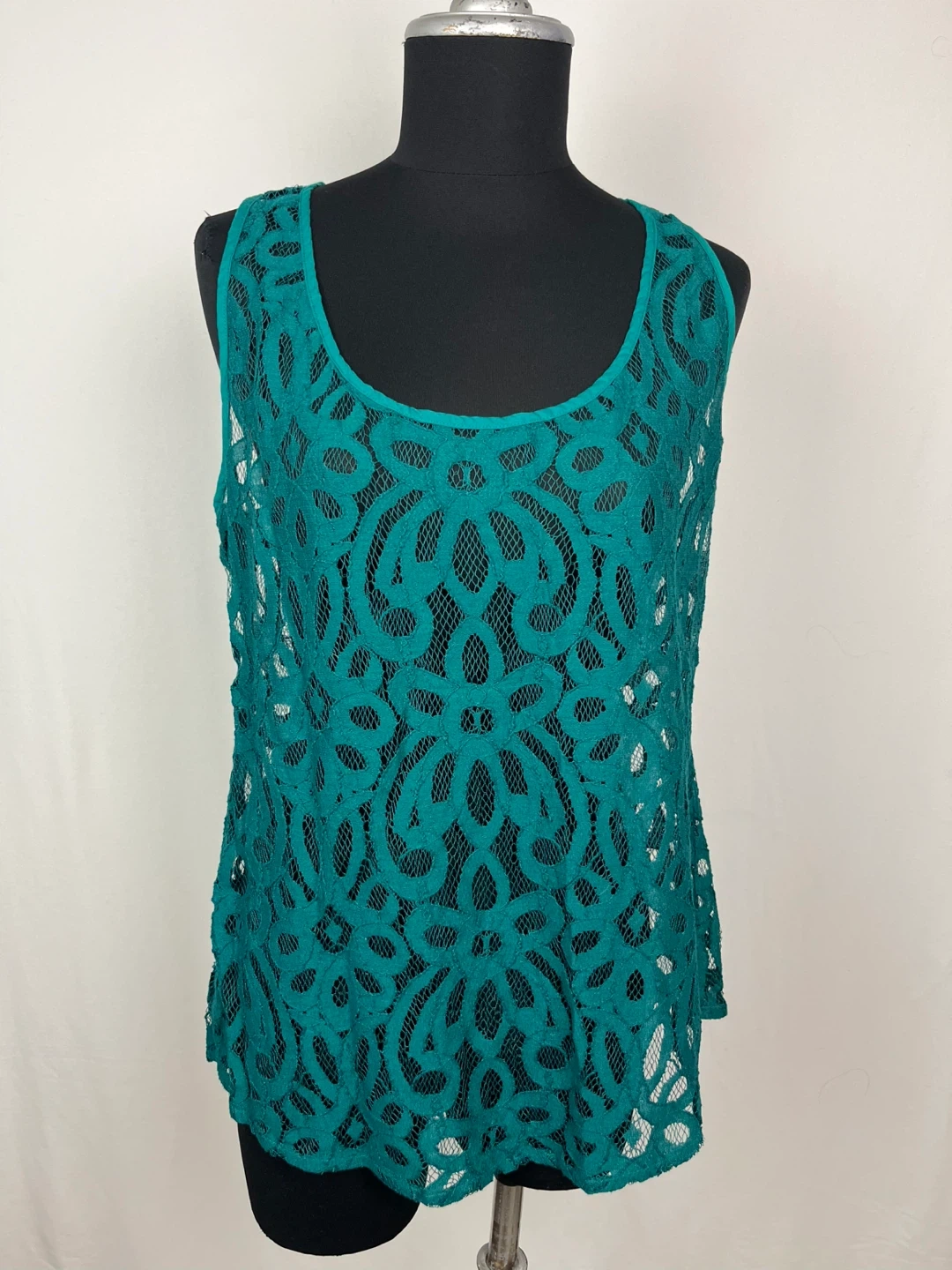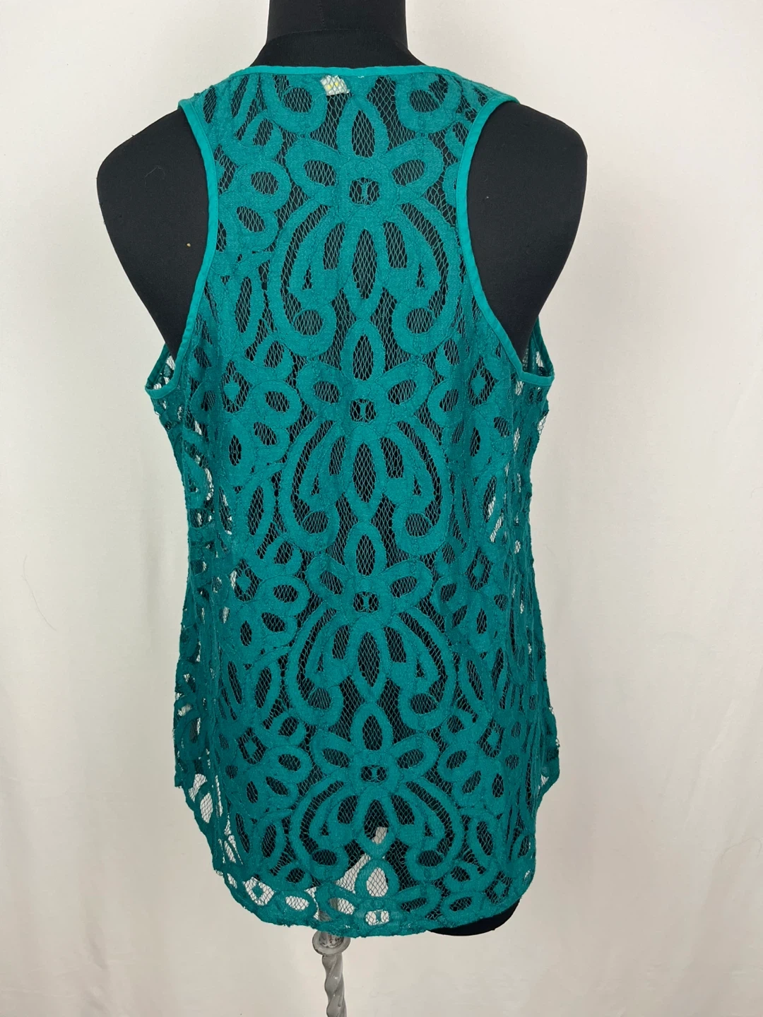 This is a Fossil teal lace tank top in size medium. It's in great condition and features a delicate lace pattern, perfect for layering or wearing on its own. Pick up at Brow of the Hill near 10th and Royal, New Westminster. Check out my other listings!