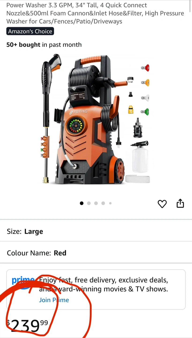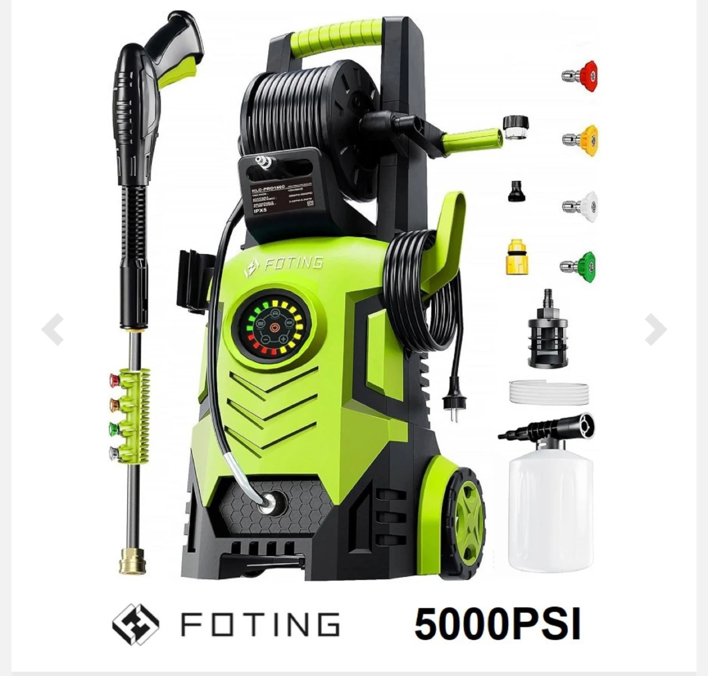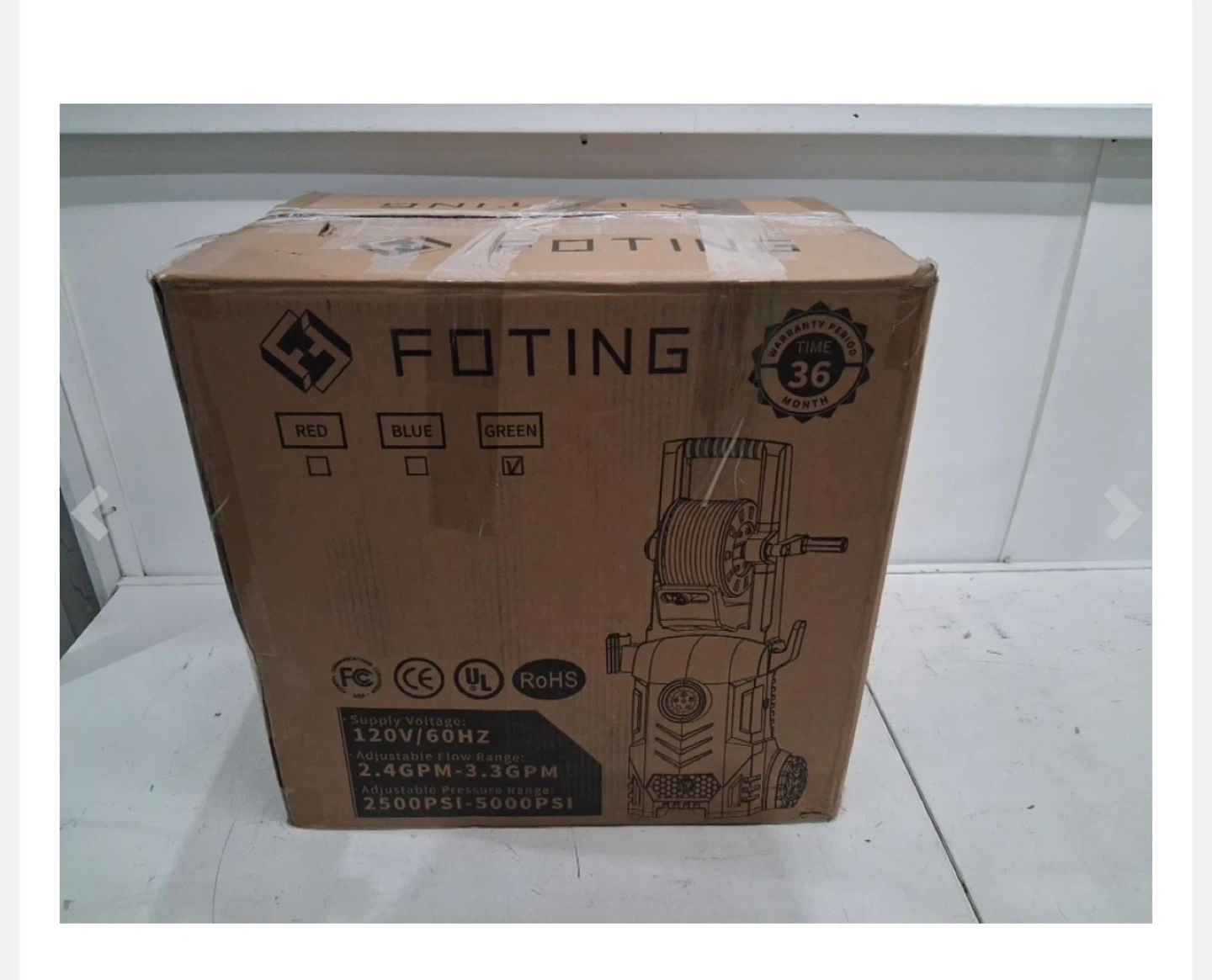 Selling a Foting pressure washer with adjustable pressure ranging from 2500PSI to 5000PSI! It comes with multiple attachments and a hose reel for easy storage. The box is included!