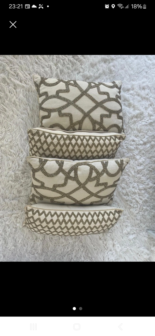 Lovely beaded offwhite Gold Throw Pillow bought at Etsy. $40 for all four.