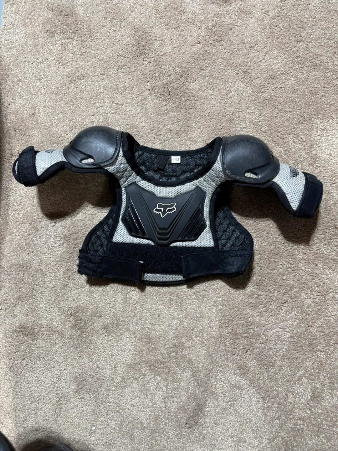 Selling a Fox Racing chest protector in black and grey. It's a size S/M. Great for motocross or other extreme sports.