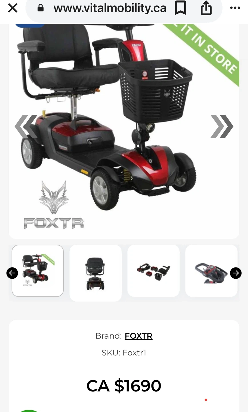 Selling a FOxtr mobility scooter. It comes with a charger. Great for getting around! Hardly Been used