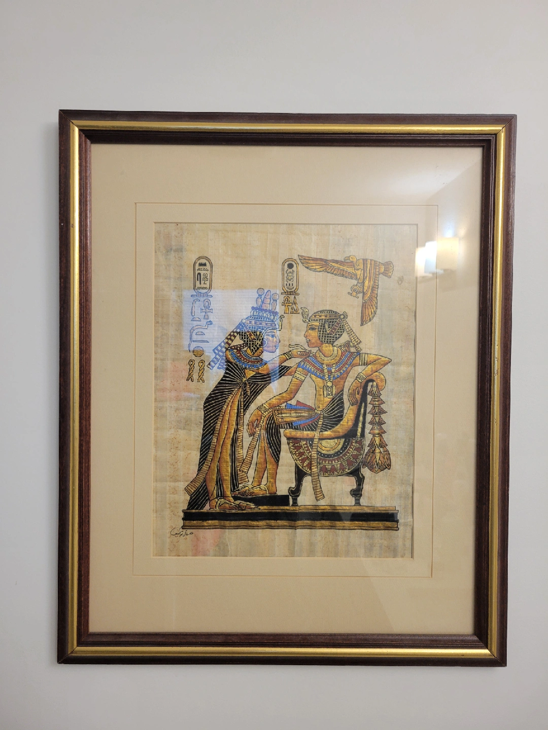 Selling a framed Egyptian papyrus painting. In excellent and would make a lovely addition to any room!