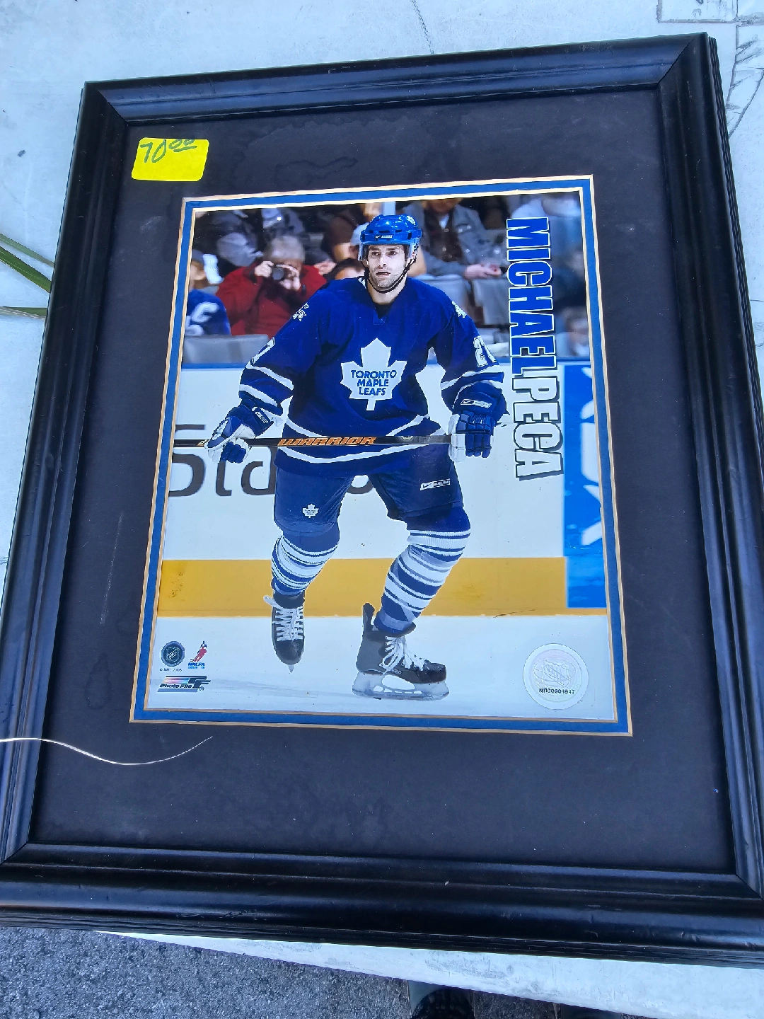 Selling a framed photo of Michael Peca in his Toronto Maple Leafs uniform. It's a great piece for any hockey fan or collector! The frame is black and the photo is professionally mounted.