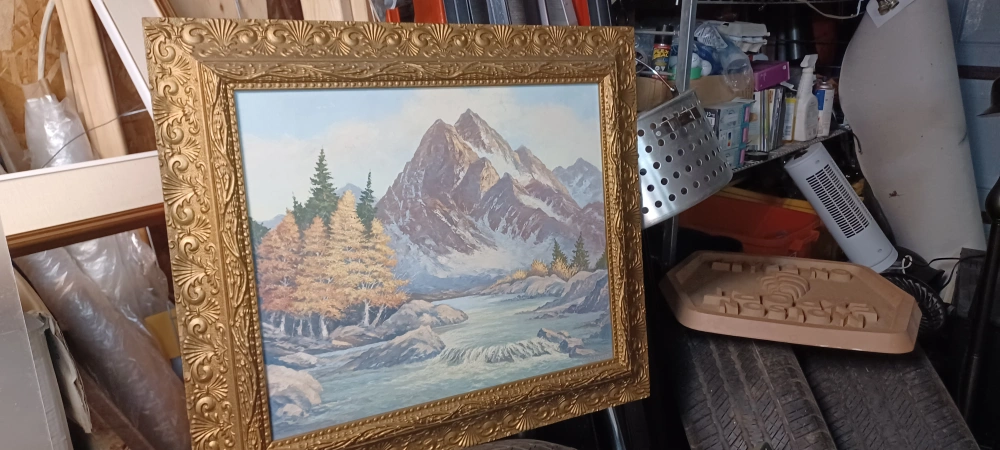 Beautiful landscape painting of a mountain scene with a decorative gold frame PLEASE CALL NOT TEXT.... 519 729-5862 415 Victoria st south kitchener