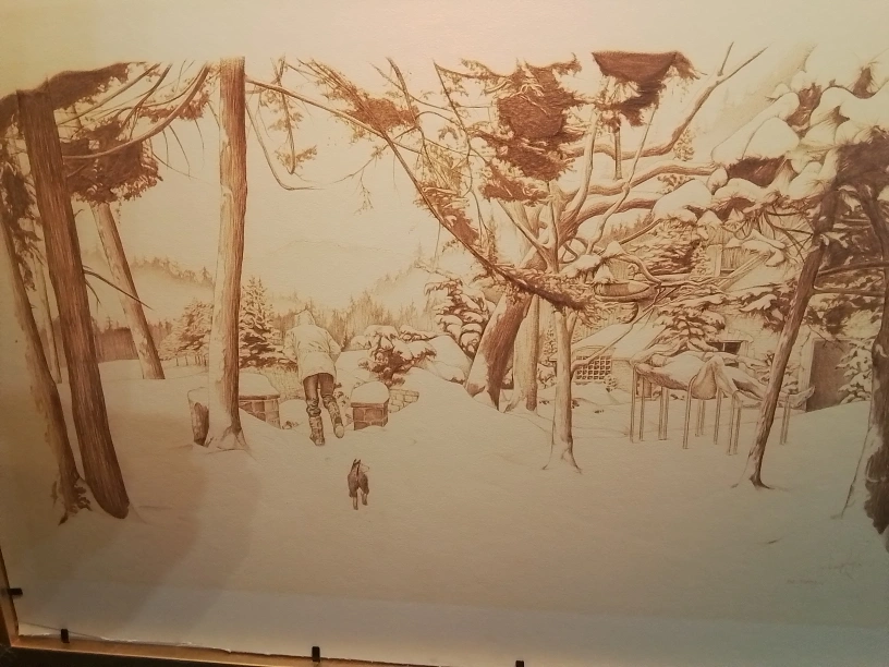 Framed Original Mix Media Painting: Kananginak "Loon and Fish"