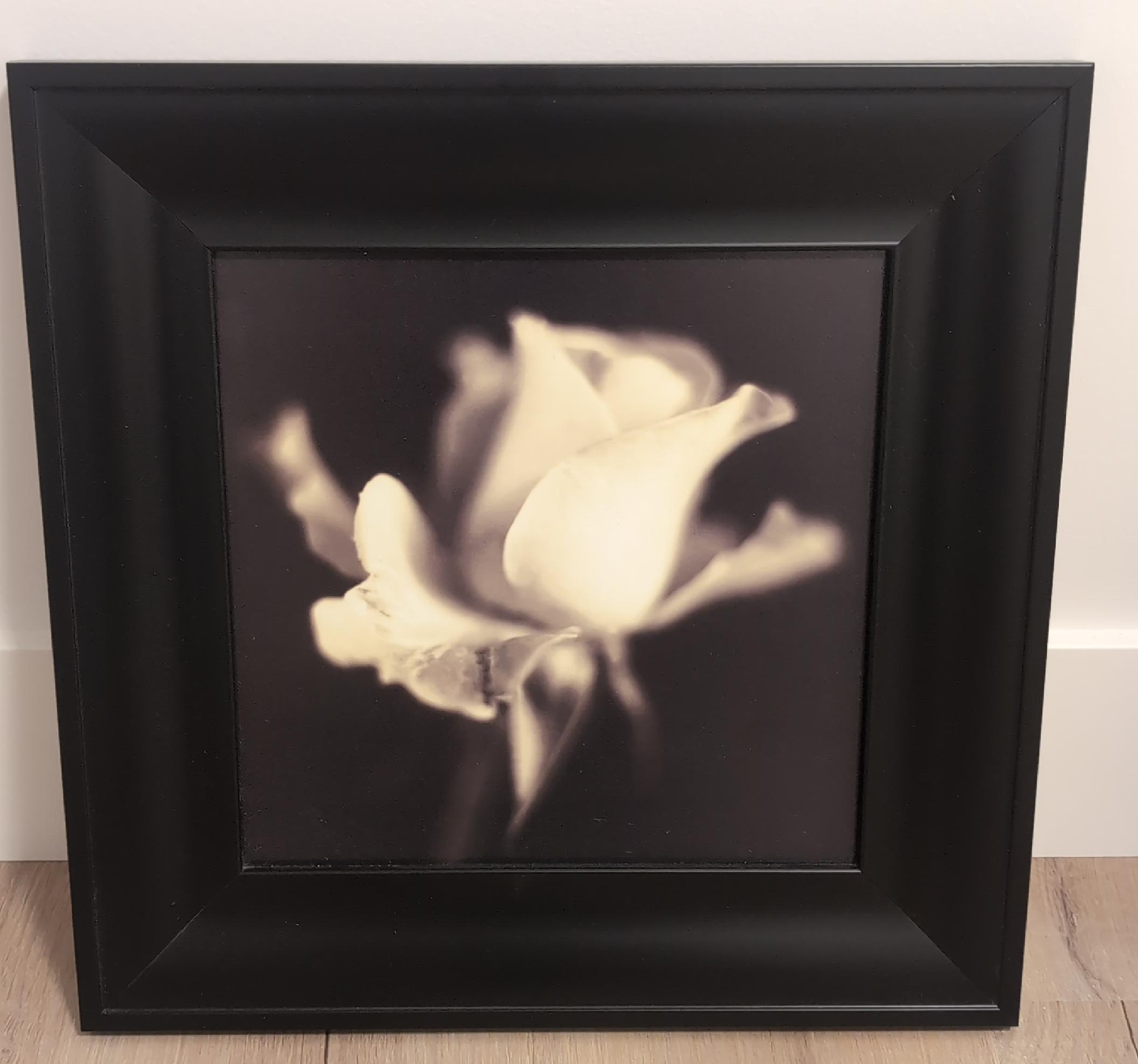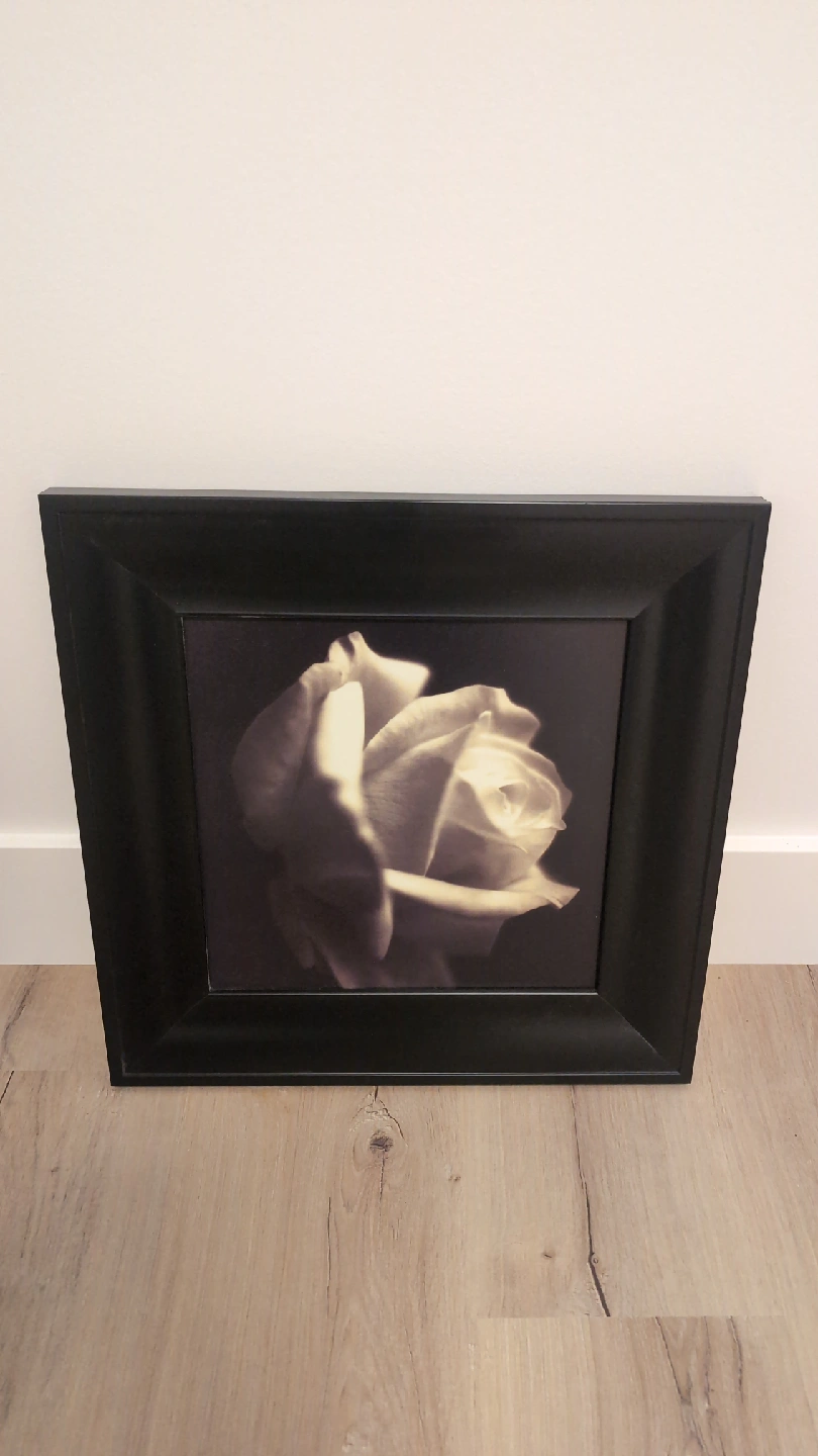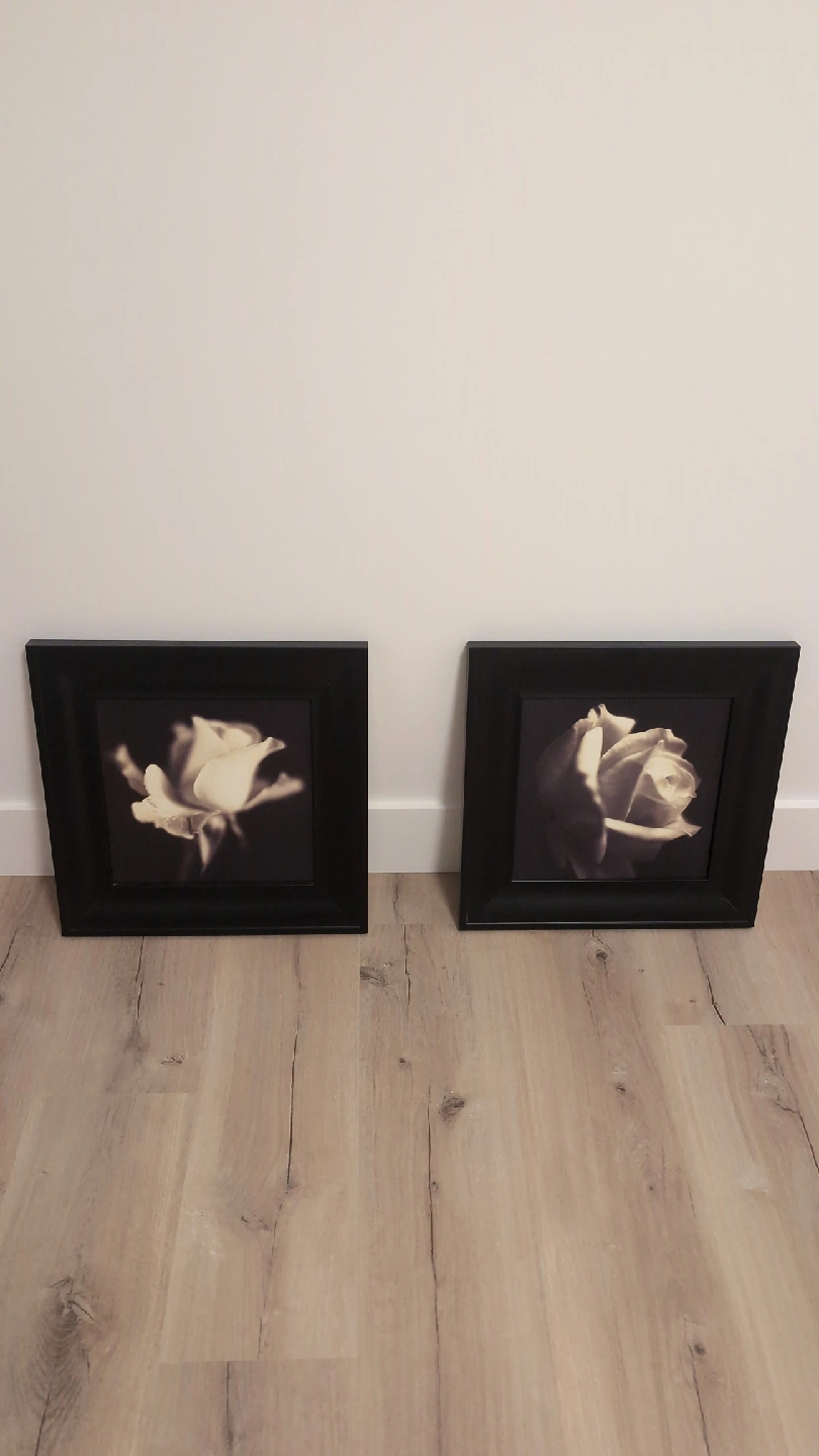 Selling a set of two framed rose prints. They're in great shape and would look lovely in any room! The frames are black and the prints are matte black and white.