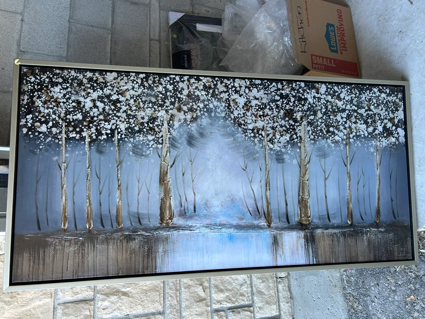 Beautiful framed painting featuring a serene tree scene! It's in great shape and ready to add a touch of nature to your home