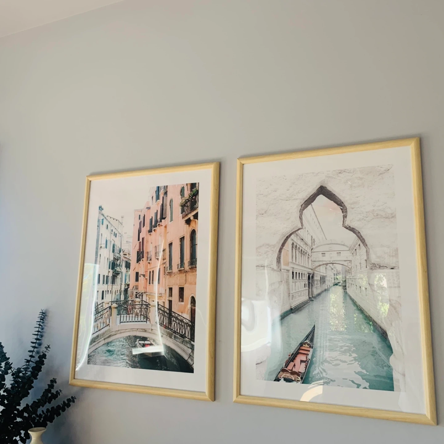 Two framed prints featuring beautiful scenes of the canals of Venice! They're ready to add a touch of Italian charm to your home decor. Used but like brand new, only a couple months old, 20”x25”