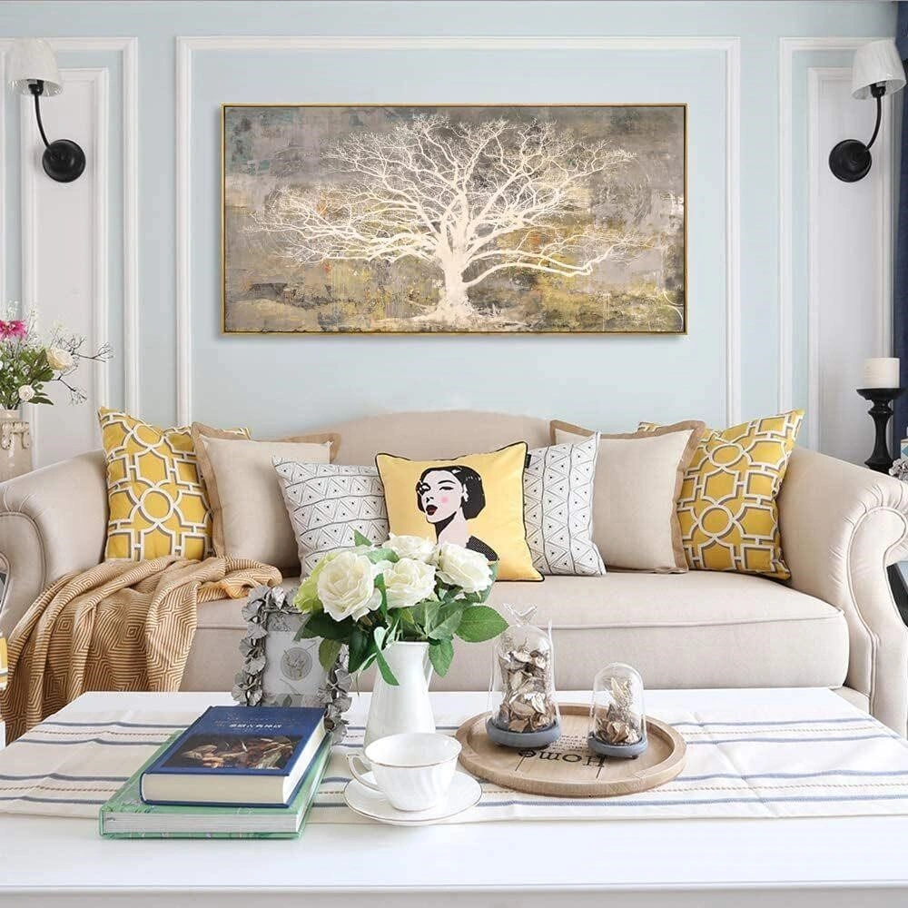 Add a touch of nature-inspired art to your home with this beautiful tree painting. The artwork features a stunning tree design with neutral tones, perfect for complementing any decor style. It's a great way to brighten up your living space!