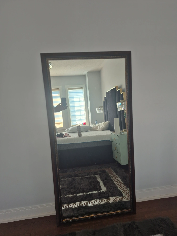 Selling a framed wall mirror in great condition! It's perfect for adding a touch of elegance to any room. The frame has a beautiful design with intricate detailing. It would look great in an entryway, bedroom, or living room