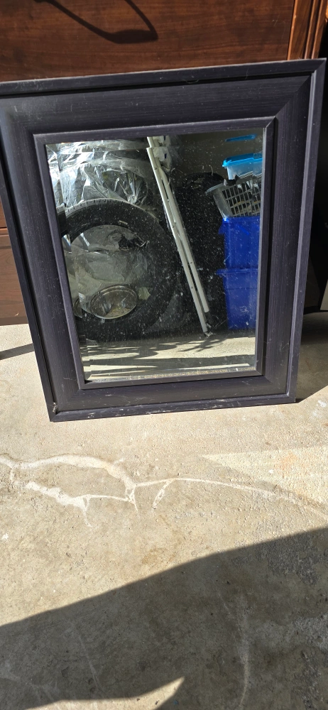 Selling a framed wall mirror with a black frame. It would look great in any room!