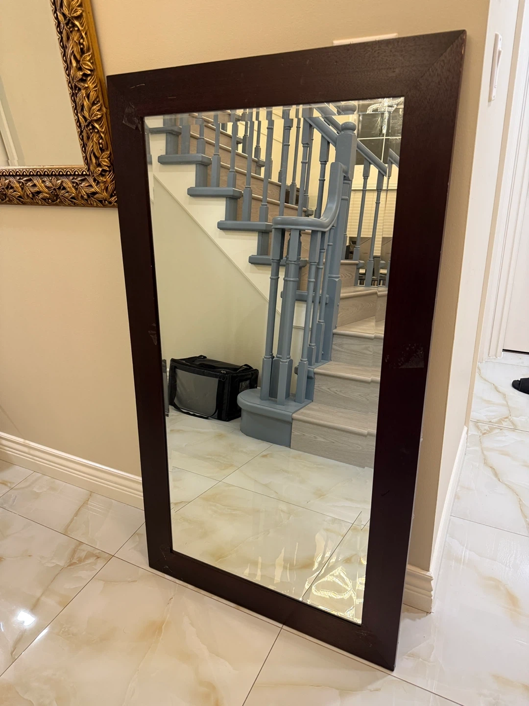 Selling a framed wall mirror. It's in great condition and ready to add a touch of elegance to your space. The frame has a dark finish, complementing various decor styles. Perfect for a bedroom, living room, or entryway Set of two mirrors. One is like new for $50 and one is scratched for $25. Both for $60.