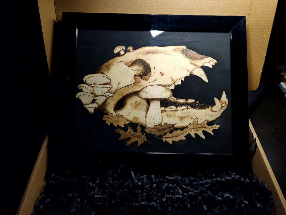 This is a unique one of a kind Woodburn. Hand crafted, framed, and ready for a new home. Can come with gift packaging if requested.