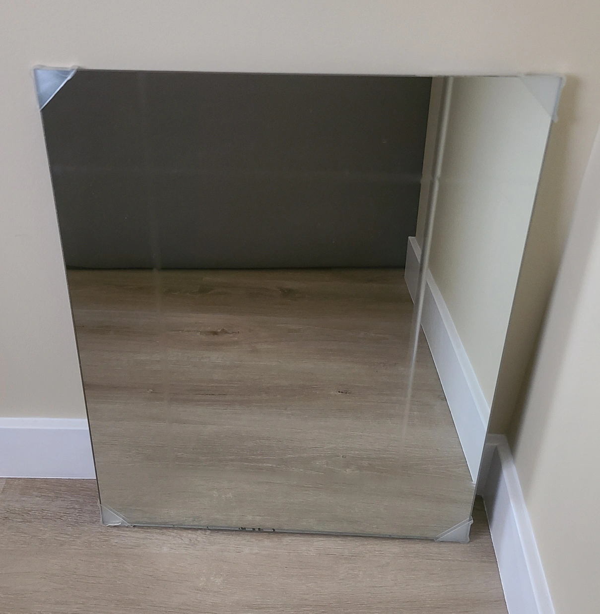 Selling a new 20"x16" frameless wall mirror. It comes with mounting hardware on the back. It's new, but it came with some tiny bits in the back scratched (see last pictures of back and front). It's barely noticable from a distance in the front. Selling just because I'm trying to get money for a friend's granddaughter medical bills. Don't forget to look at my other listings!