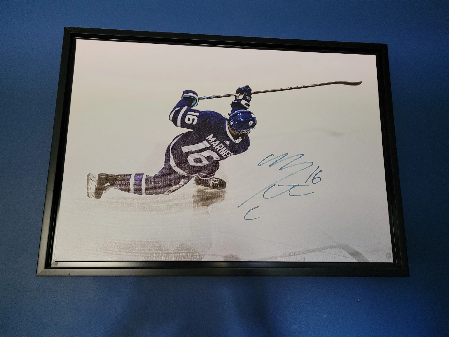 Selling a Frameworth autographed picture of Mitch Marner. It comes with a certificate of authenticity from Frameworth Sports Marketing
