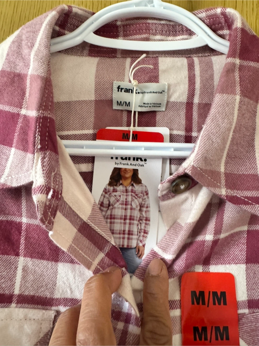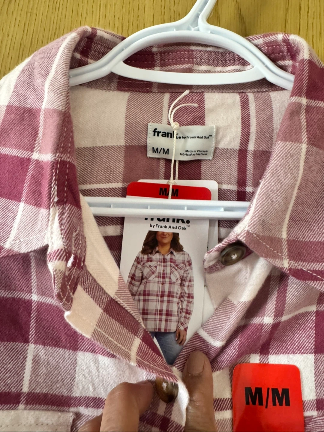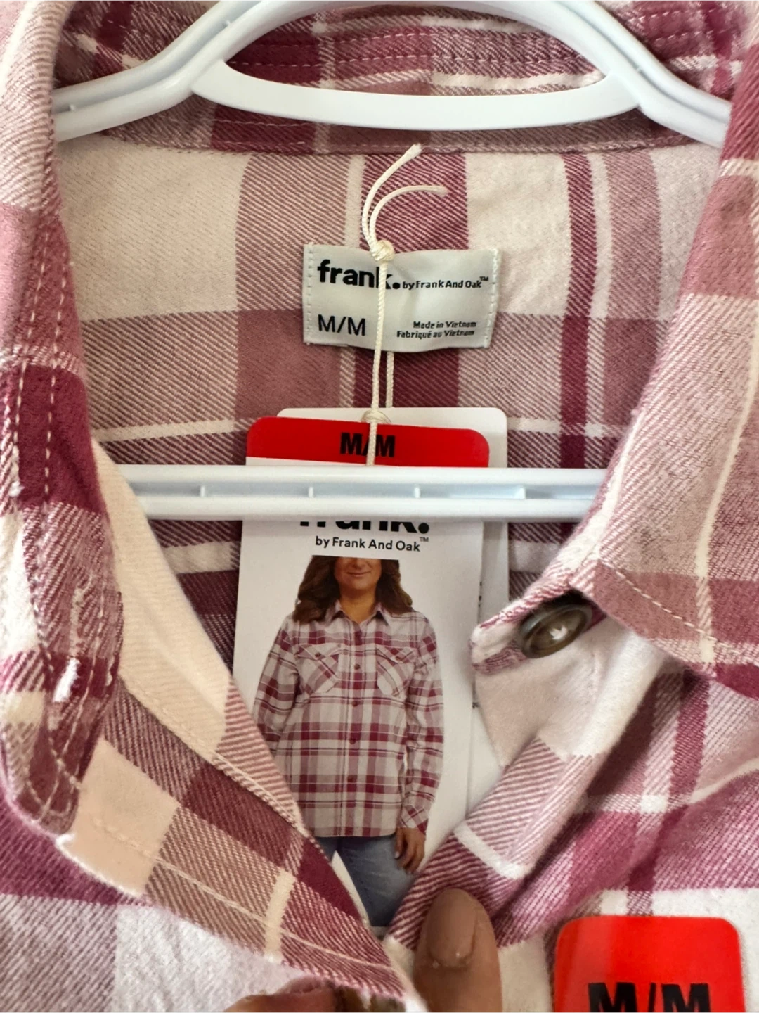 I'm selling a brand new Frank and Oak plaid flannel shirt! It's a size medium and has a lovely burgundy and cream plaid pattern. Perfect for layering or wearing on its own