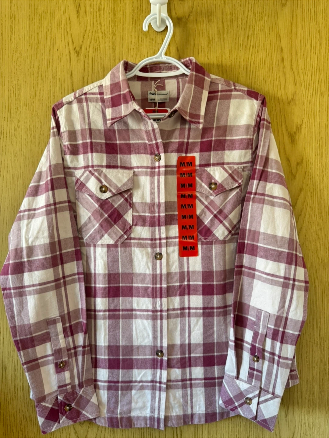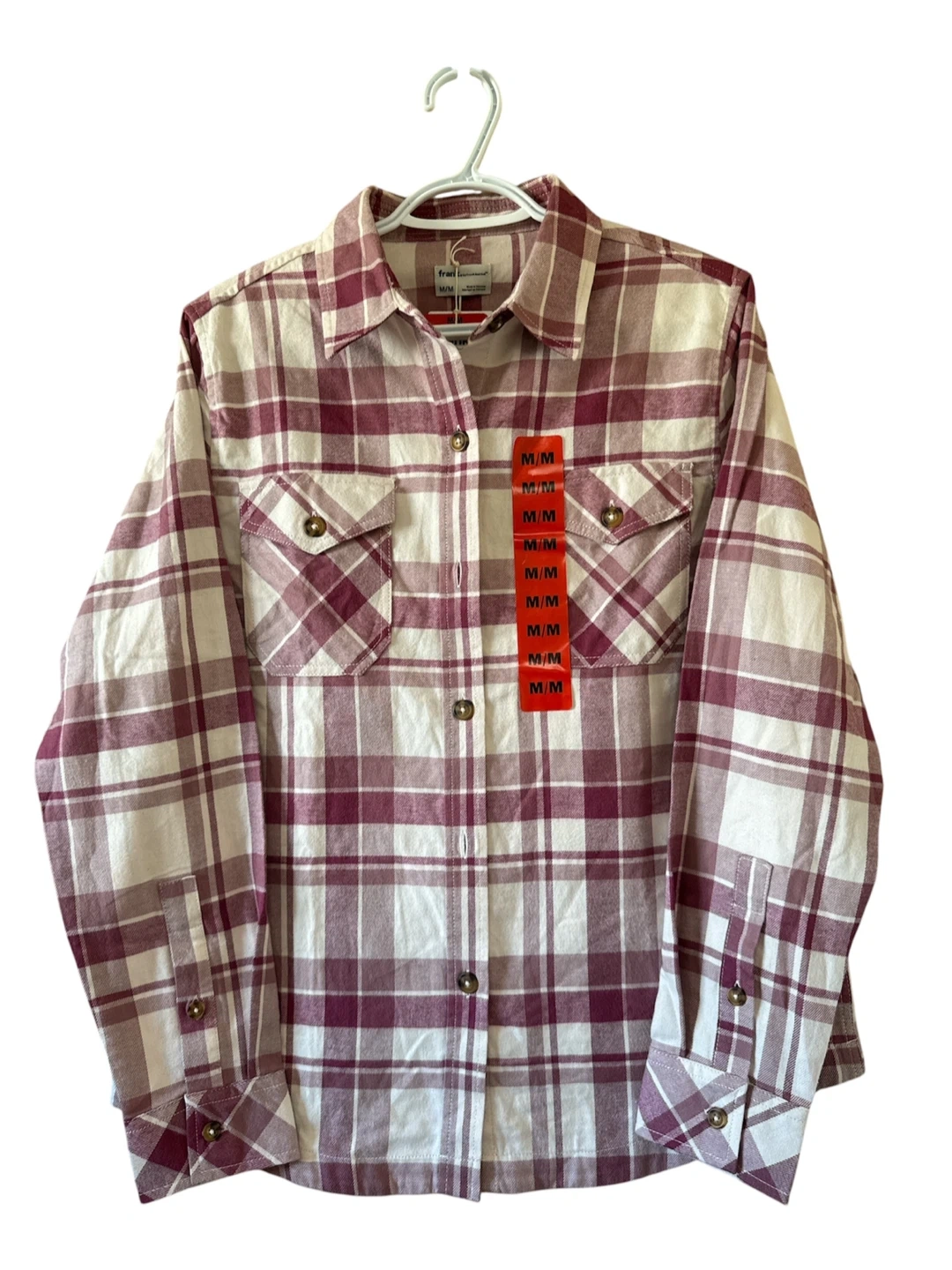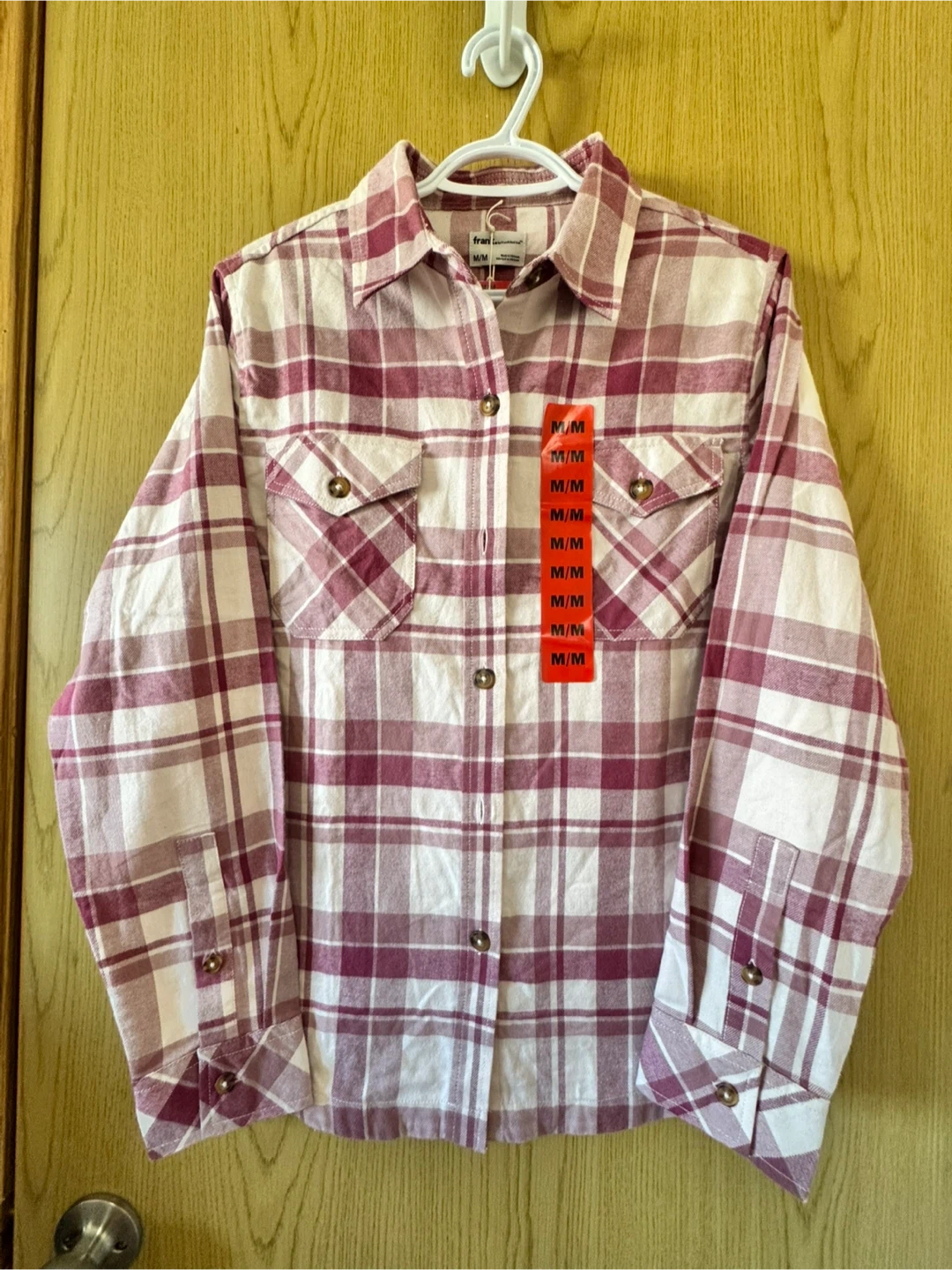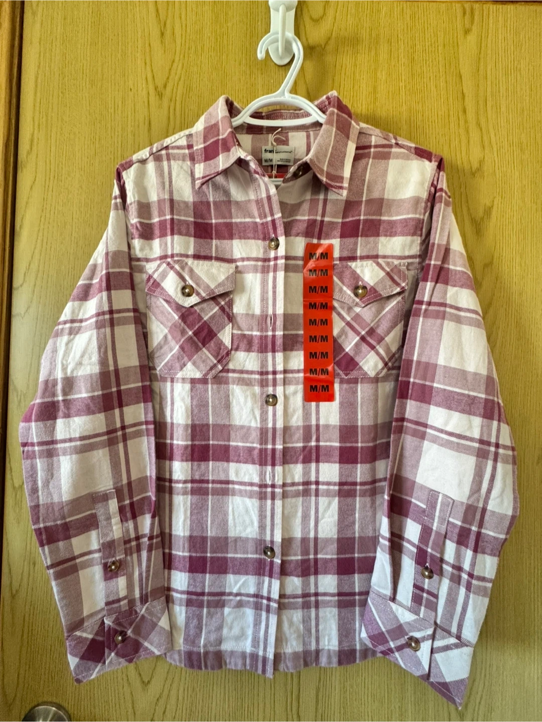 I'm selling a brand new Frank and Oak plaid flannel shirt! It's a size medium and has a lovely burgundy and cream plaid pattern. Perfect for layering or wearing on its own