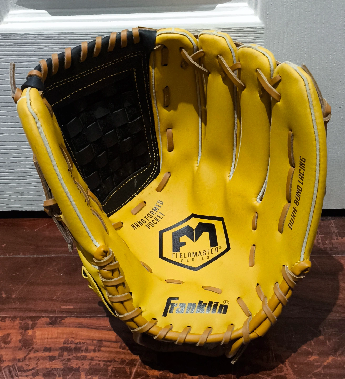 Selling a Franklin Fieldmaster Series baseball glove. It features a hard-formed pocket and dura-bond lacing for durability. This glove is in great shape and ready for the field!