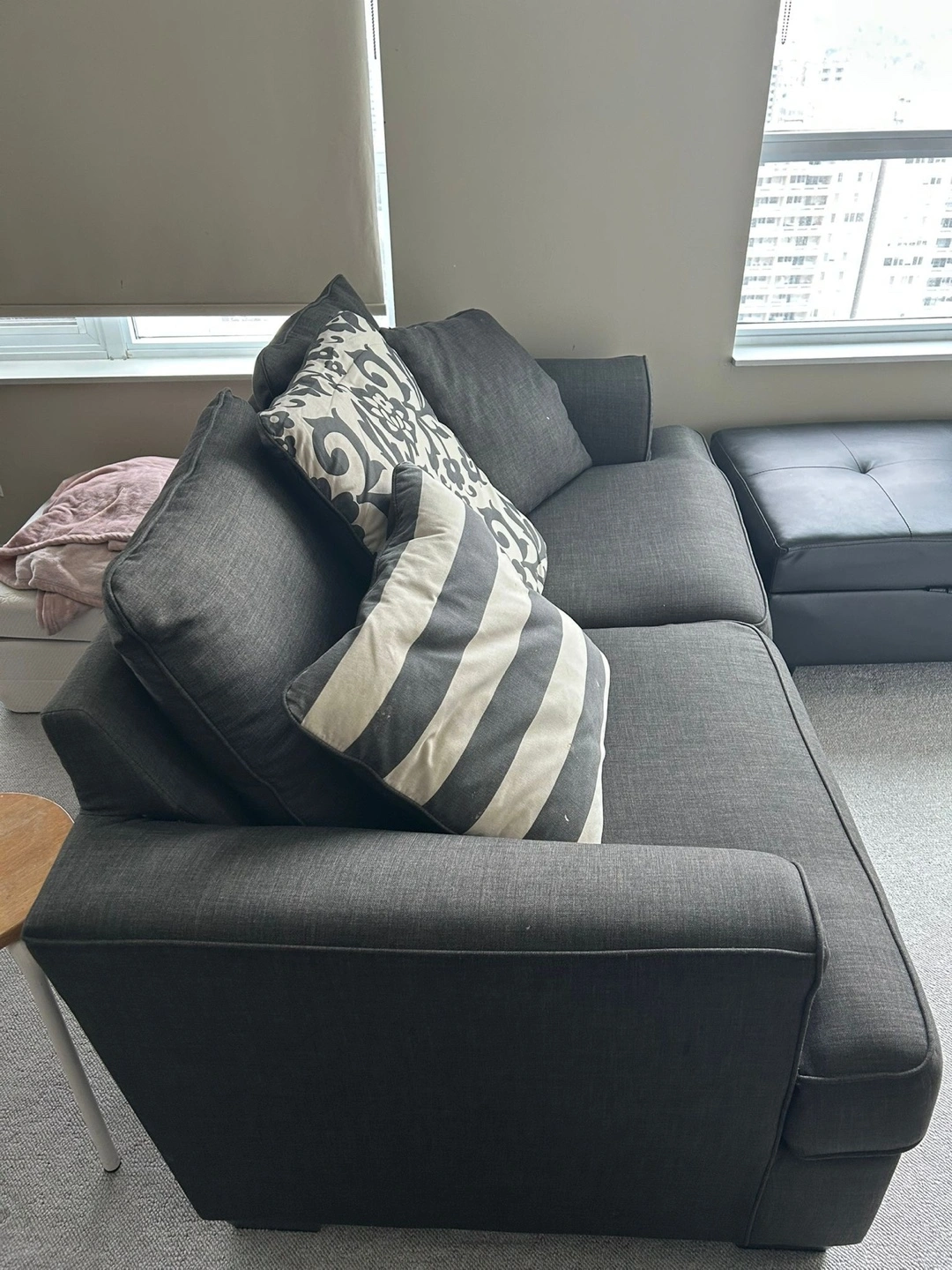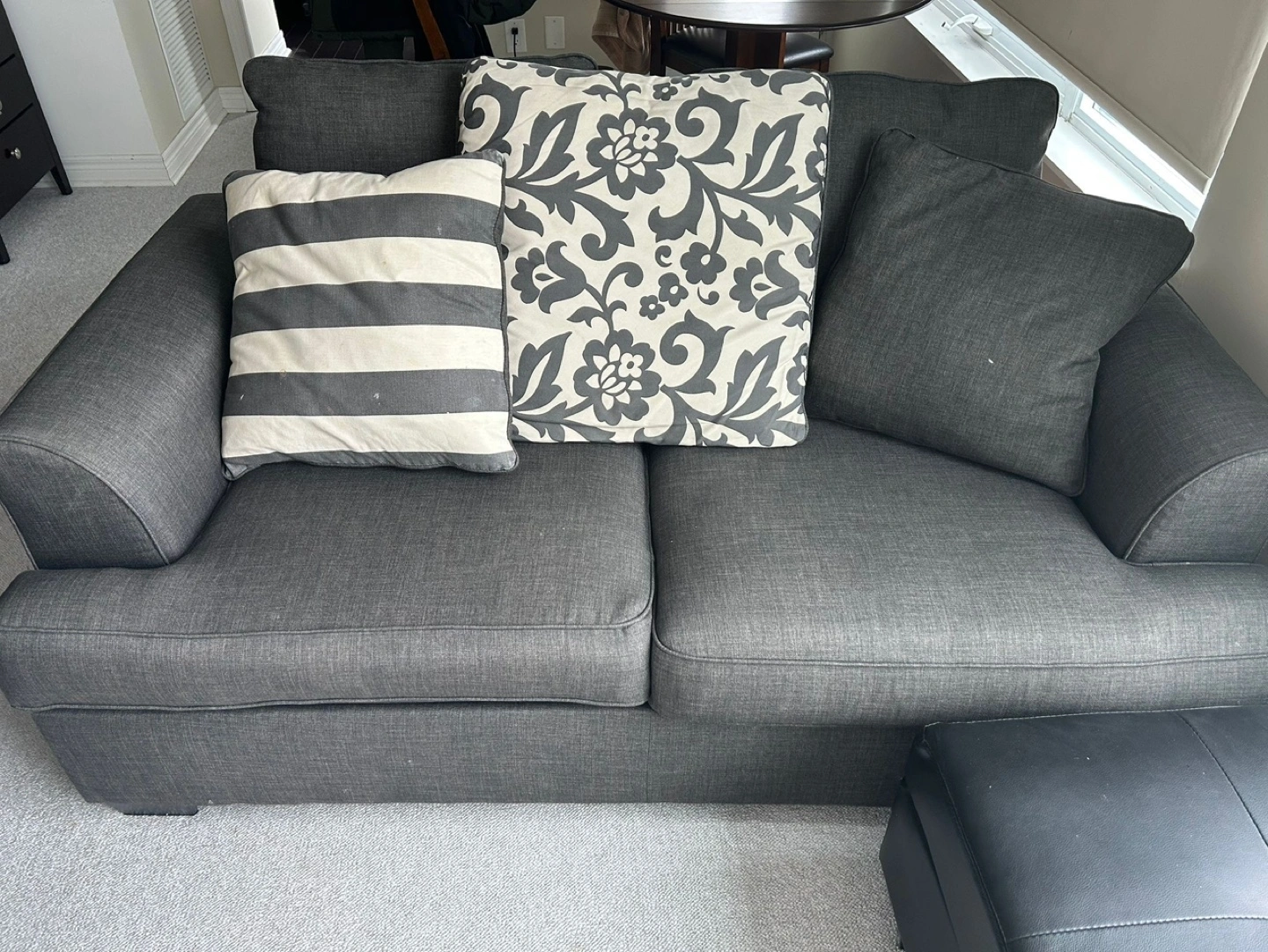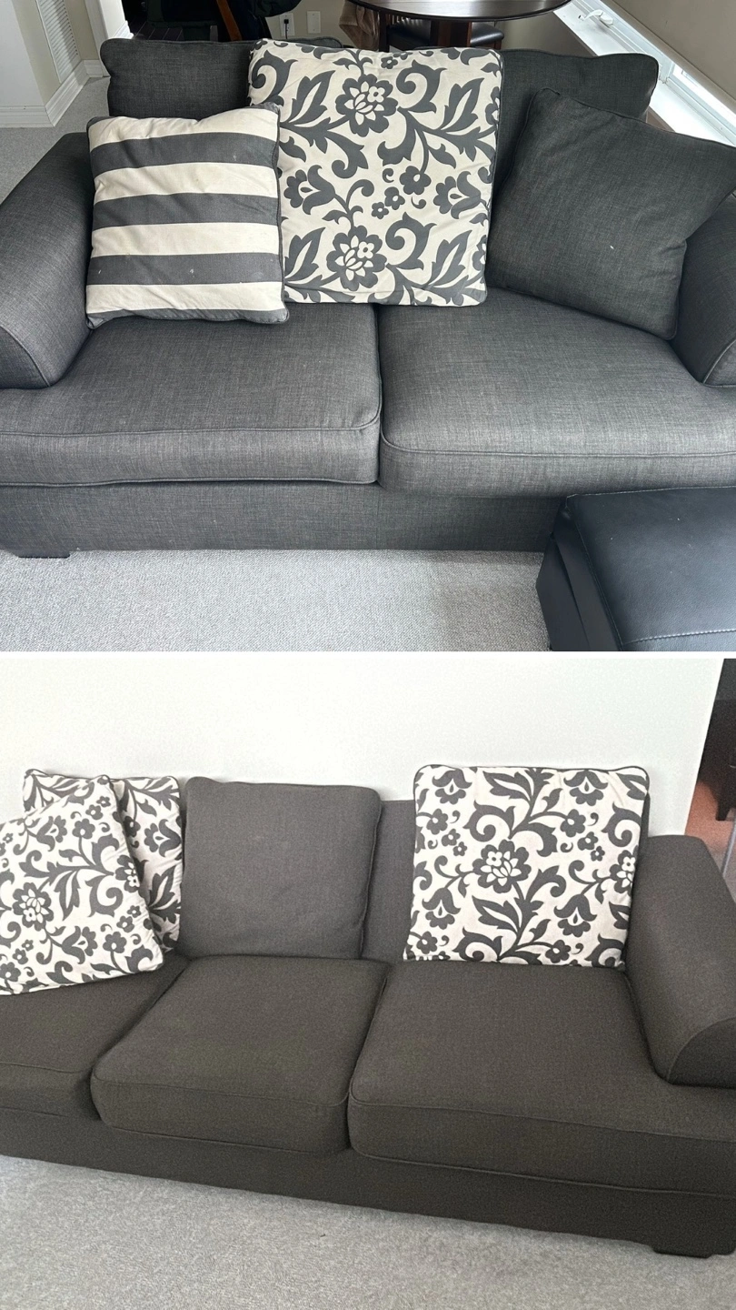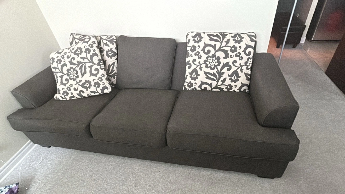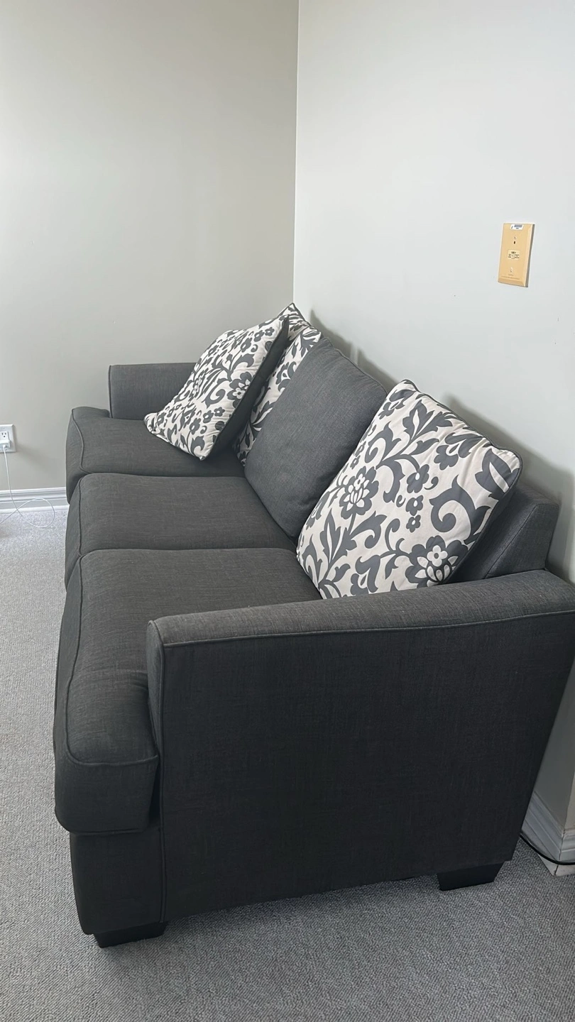 ✅ SAME DAY FREE DELIVERY AVAILABLE🚚💨 $350 🏷️ Or $200 large love seat $170 smaller love seat (OBO) ITEM DESCRIPTION: Description - 2 piece love seat / 3 seater - Colour: Grey - comfy - nice design - minor wear - soft material - no major marks/stains - washable back cushions MEASUREMENTS 📏: Large love seat: - L: 78” x W: 33” x H:29” (approx.) Smaller love seat: - L: 57” x W: 33” x H:29” (approx.) ✅ SAME DAY FREE DELIVERY AVAILABLE ✅ ✨ALL ITEMS FIRST COME FIRST SERVE ✨